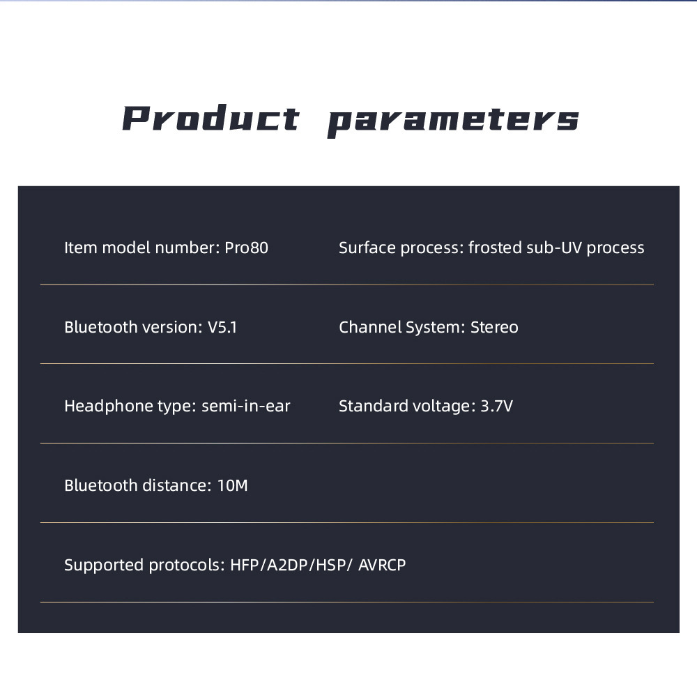 PRO 80 진정한 무선 블루투스 헤드셋 이어버드 자기 충전 e-스포츠 스포츠 양방향 스테레오를 위한 국경 간 전용 공급