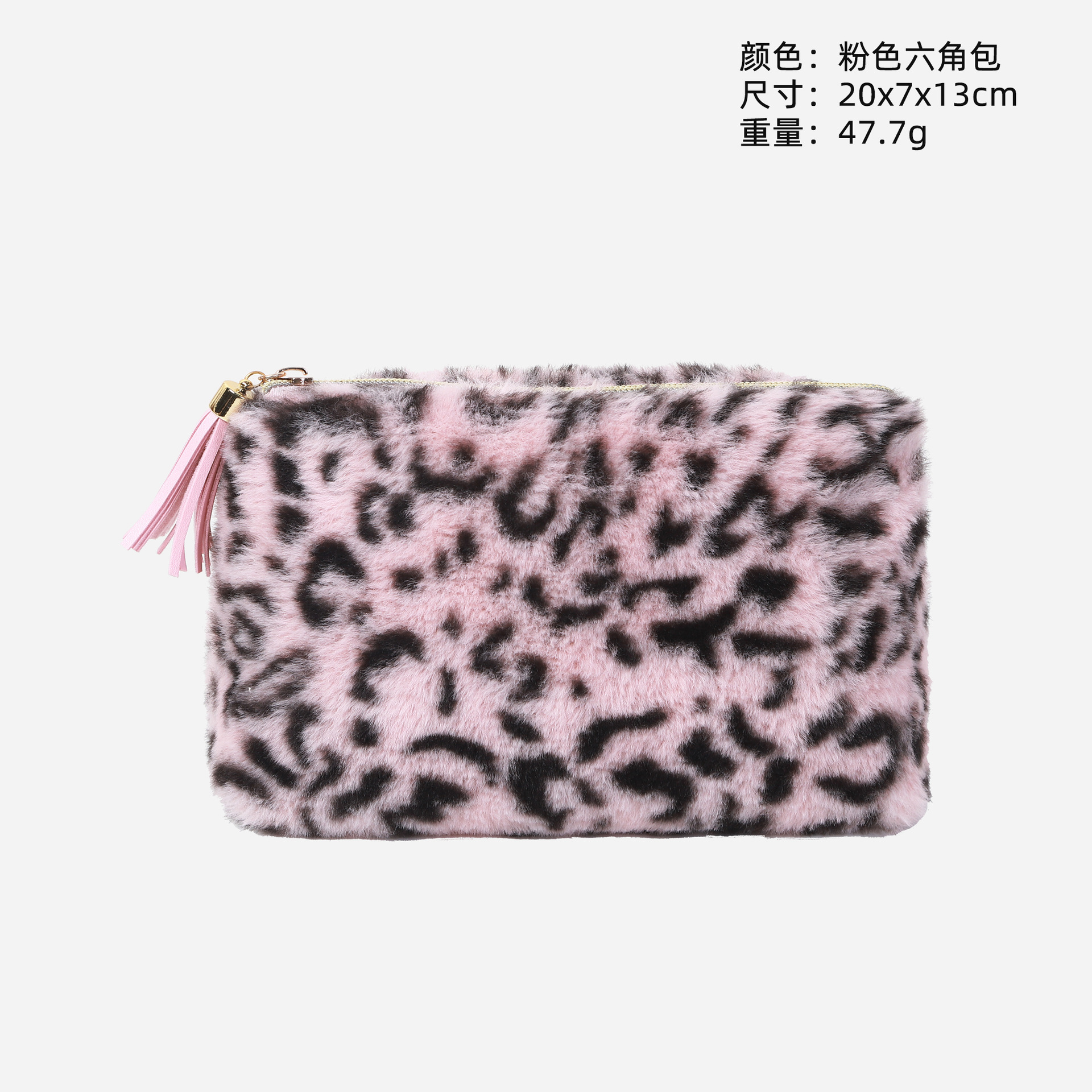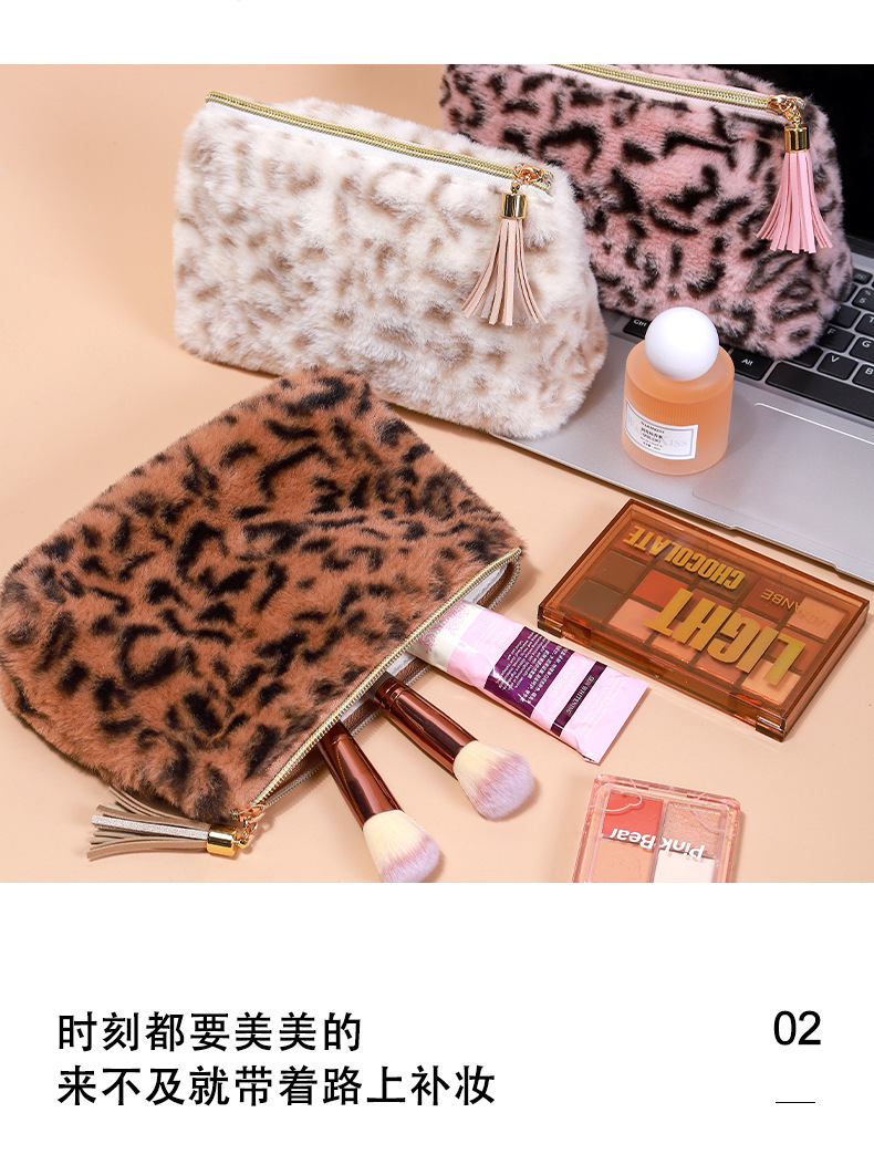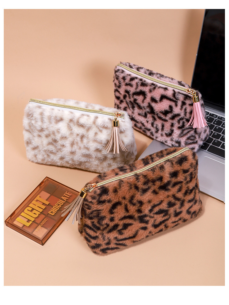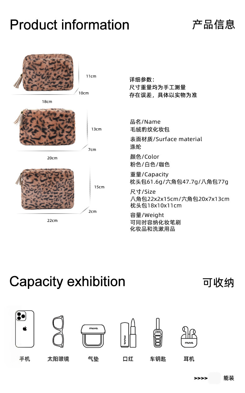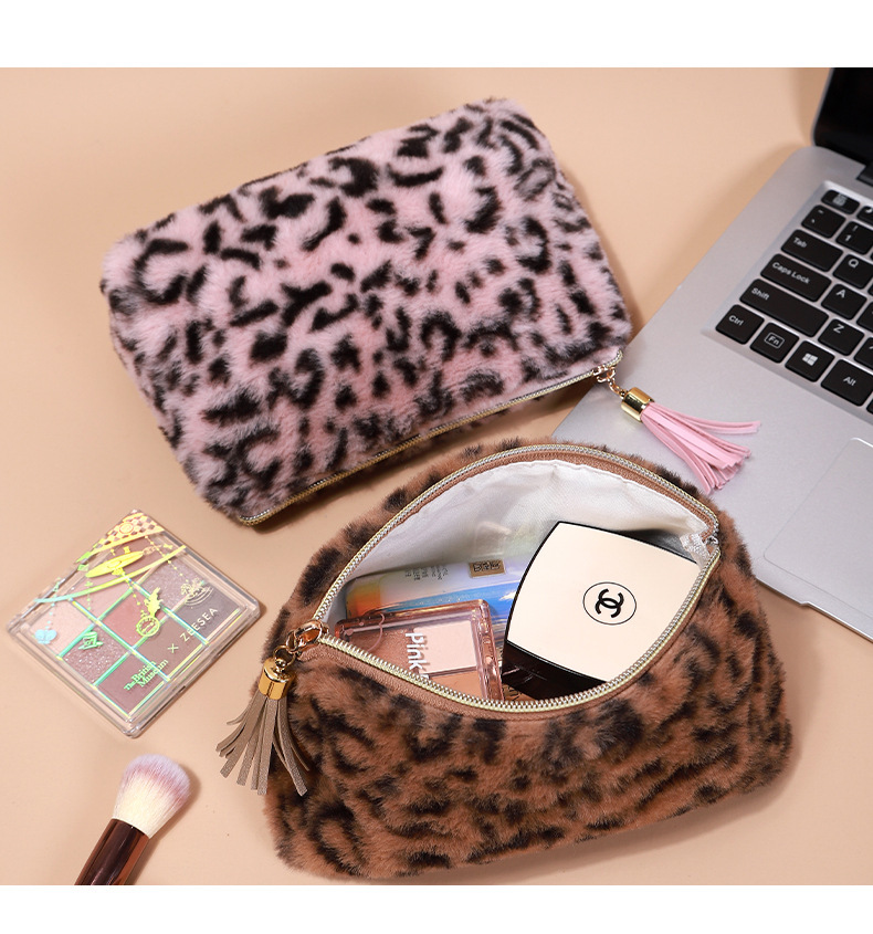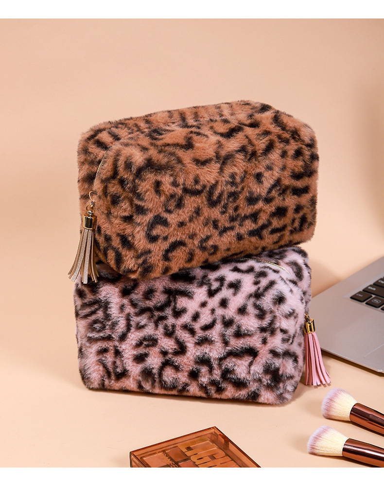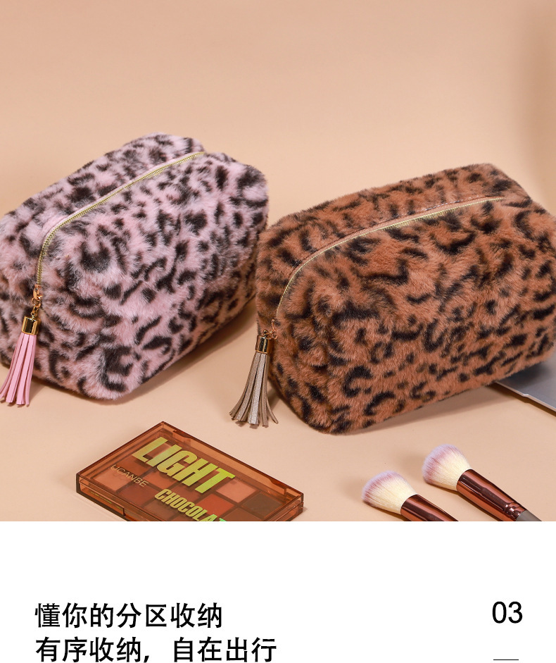 2025 새로운 레오파드 인쇄 플러시 화장품 가방 대용량 저장 고급 메이크업 도구 저장 가방 세면 용품 가방
