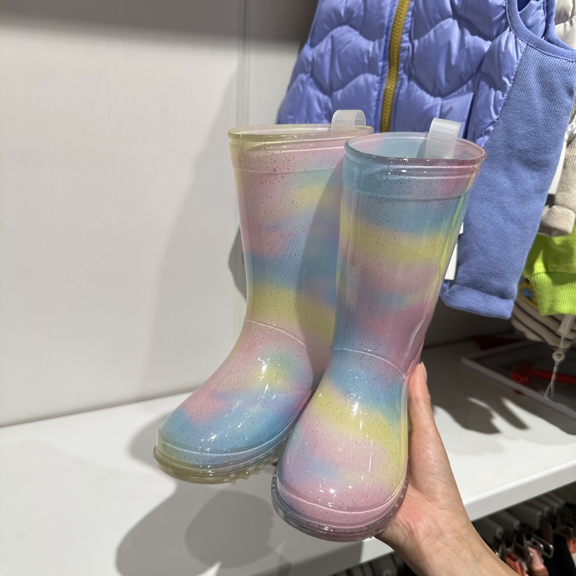 부모-자식 수출 무지개 어린이 장화 초등학생 소녀 유치원 미끄럼 방지 중간 튜브 장화 무지개 사계절 워터 슈즈스토어 가기