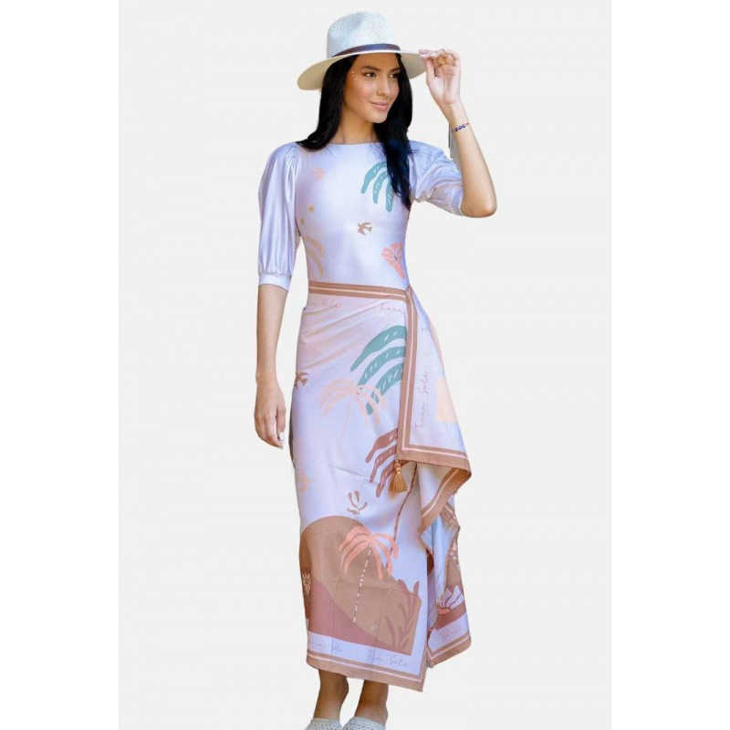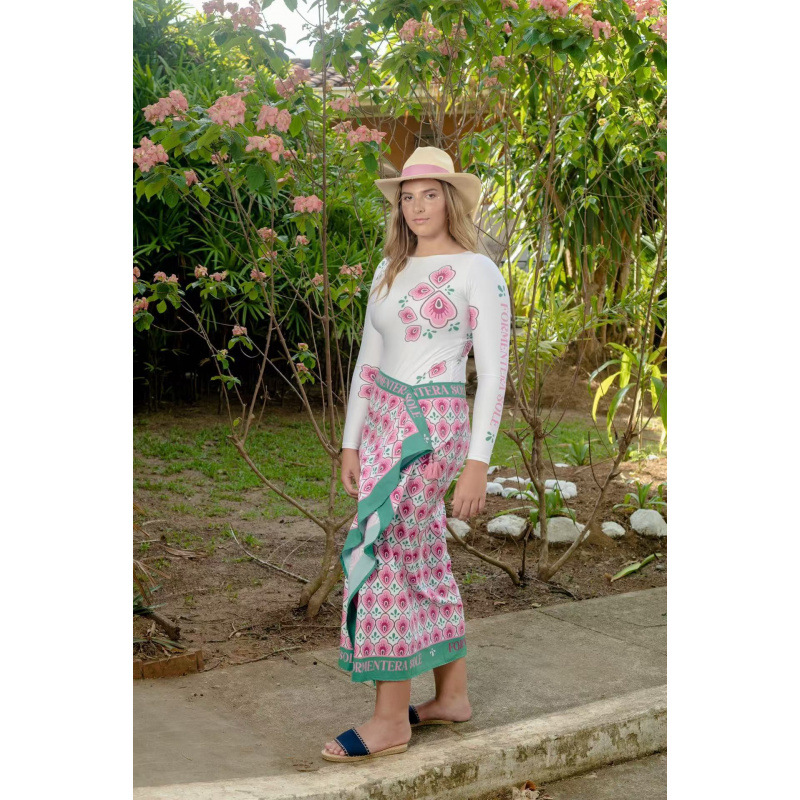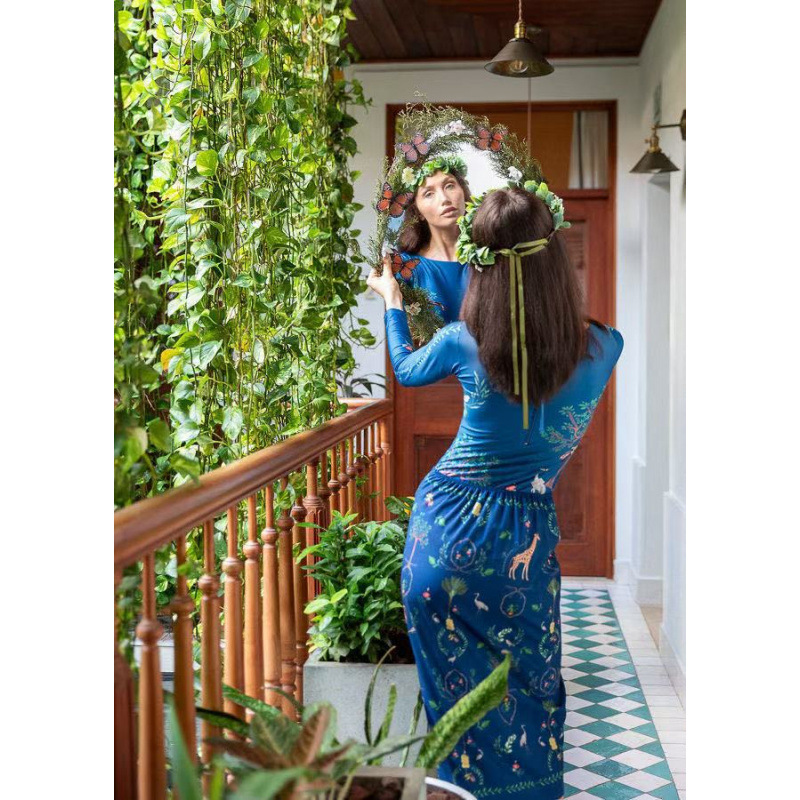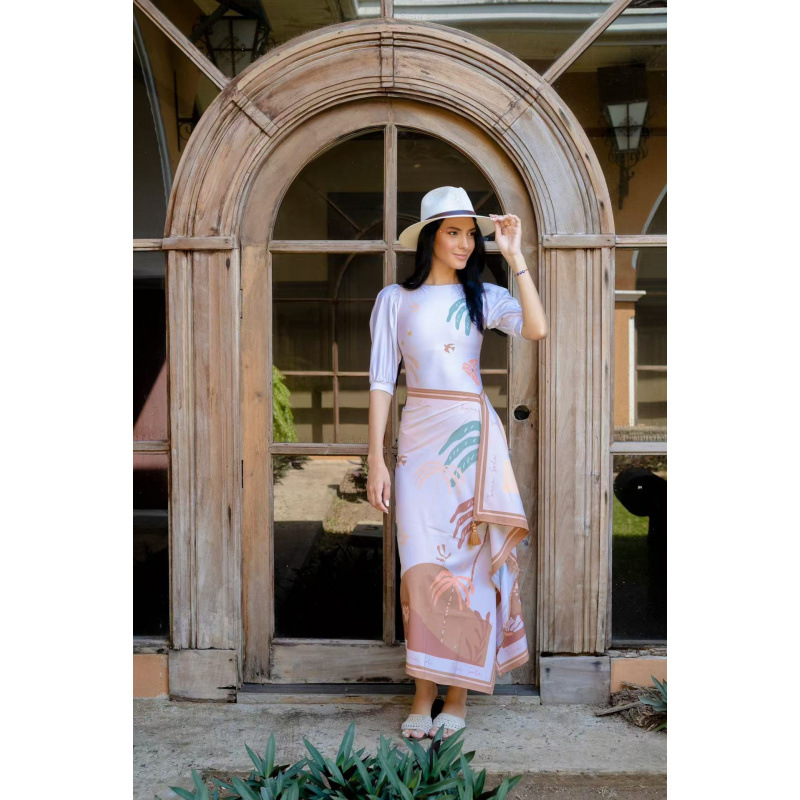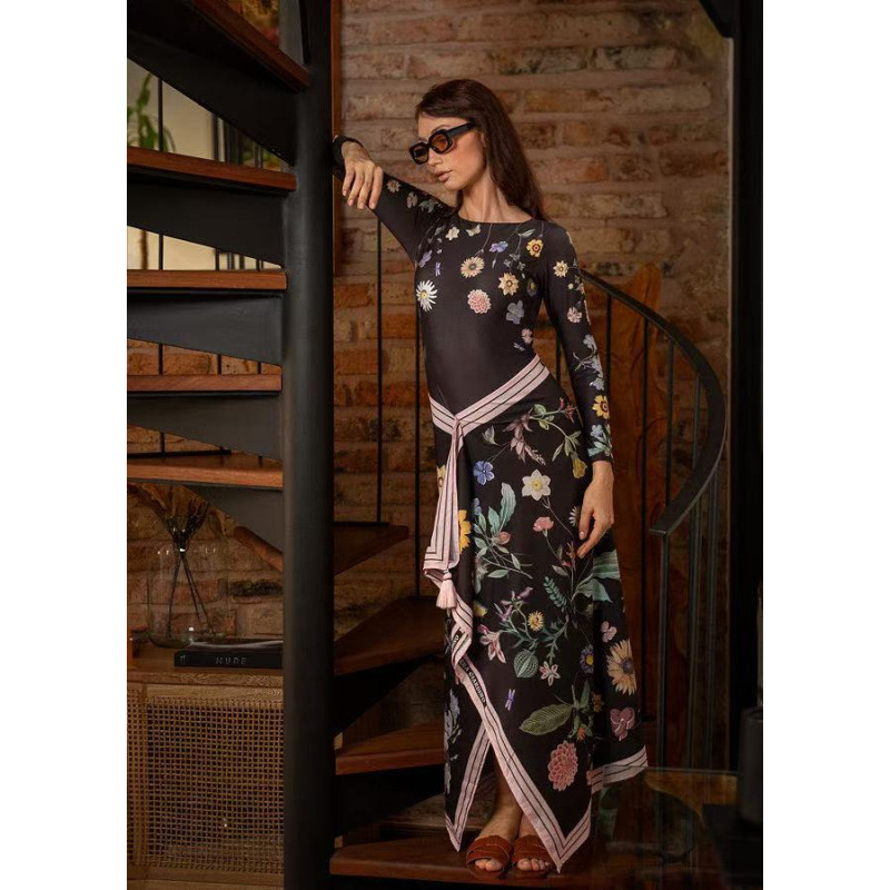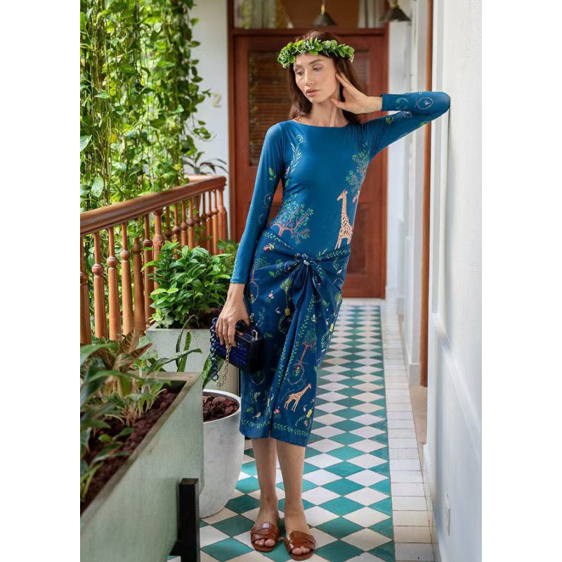 유럽과 미국의 프린트 긴팔 비키니 자외선 차단 비치 스커트 세트 비키니 크로스보더 아마존 보수적인 원피스 수영복스토어 가기