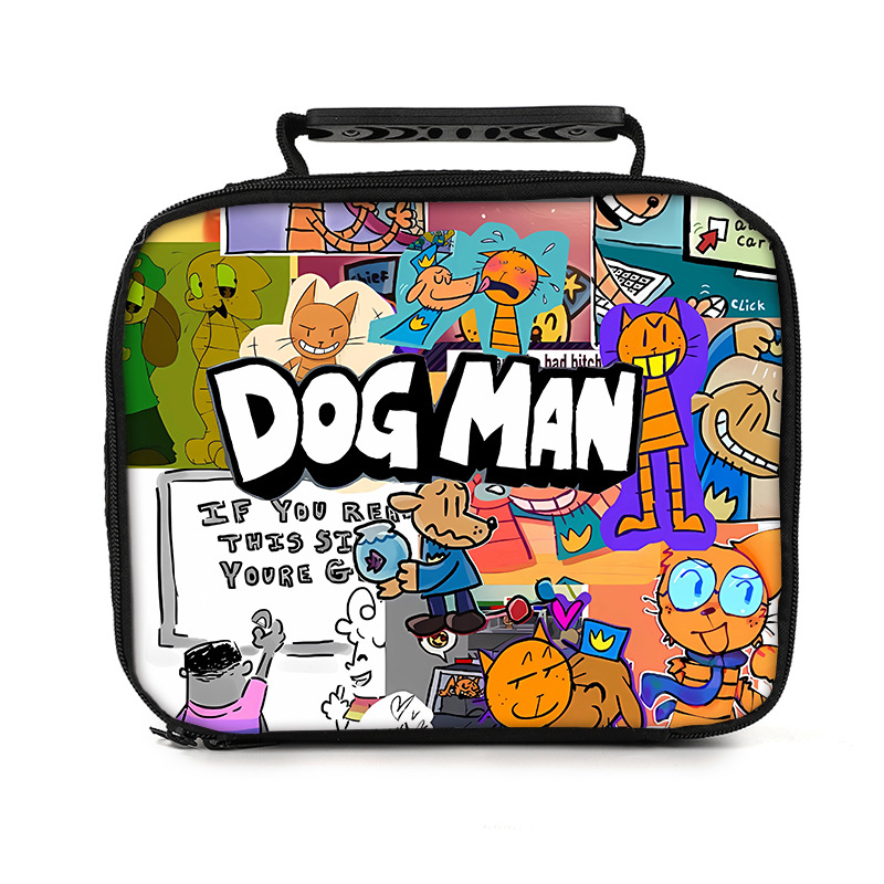 Detective Dog Adventure 시리즈 Dog Man의 휴대용 점심 가방 절연 상자 DIY 인쇄 아이스 가방 식사 가방스토어 가기