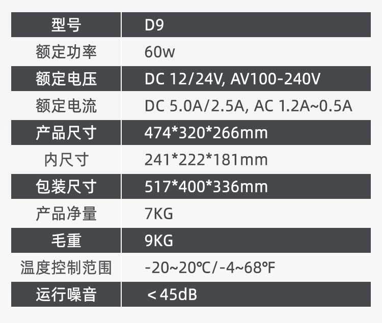 • D9 히든 블랙 + 차량/가정 겸용 + 컴프레서 냉각