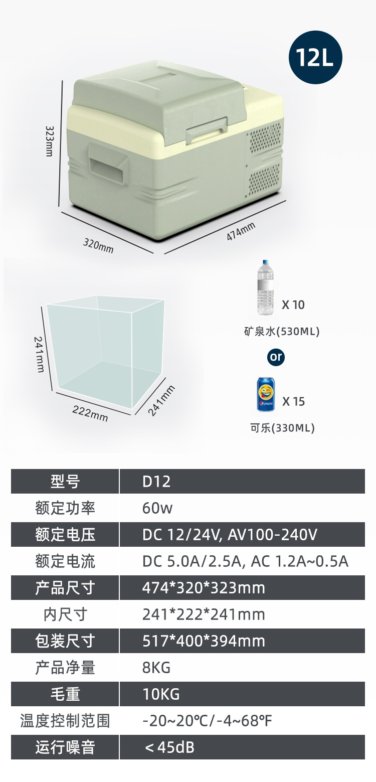 야외용 컴프레서 냉장고 9L12L 빠른 냉동 차량 및 가정 겸용 트럭 야외용 12V24V 차량용 소형 냉장고스토어 가기