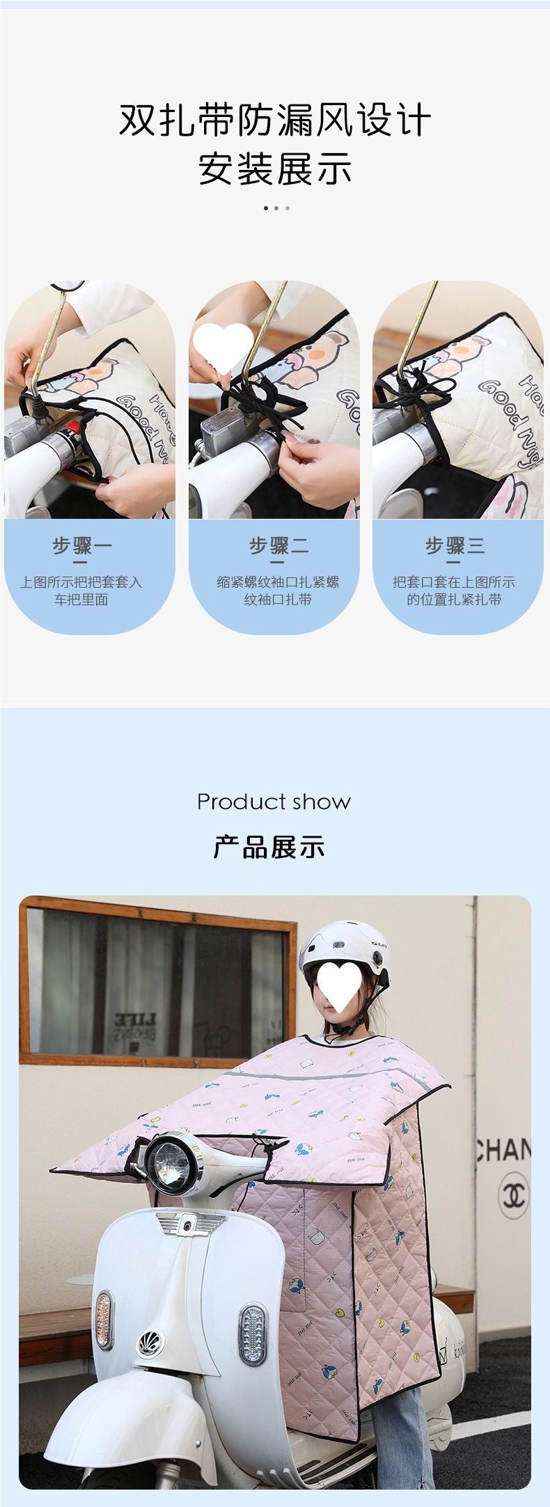 • 3계절 모델(수축형 그립 + 양면 방수 + 프리 시트쿠션) 딸기