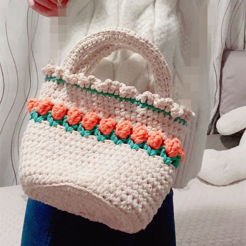 사랑의 양모 가방 재료 가방 여성 손으로 짠 버킷 가방 diy 재료 가방 귀여운 간단한 휴대용 Jieqi스토어 가기