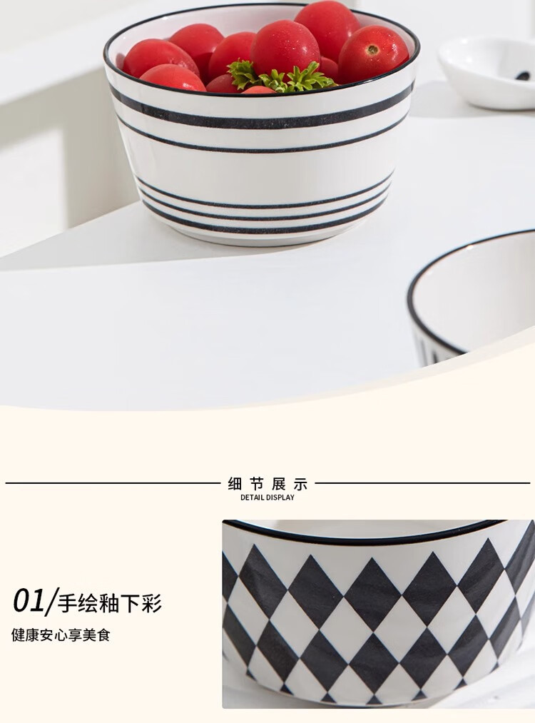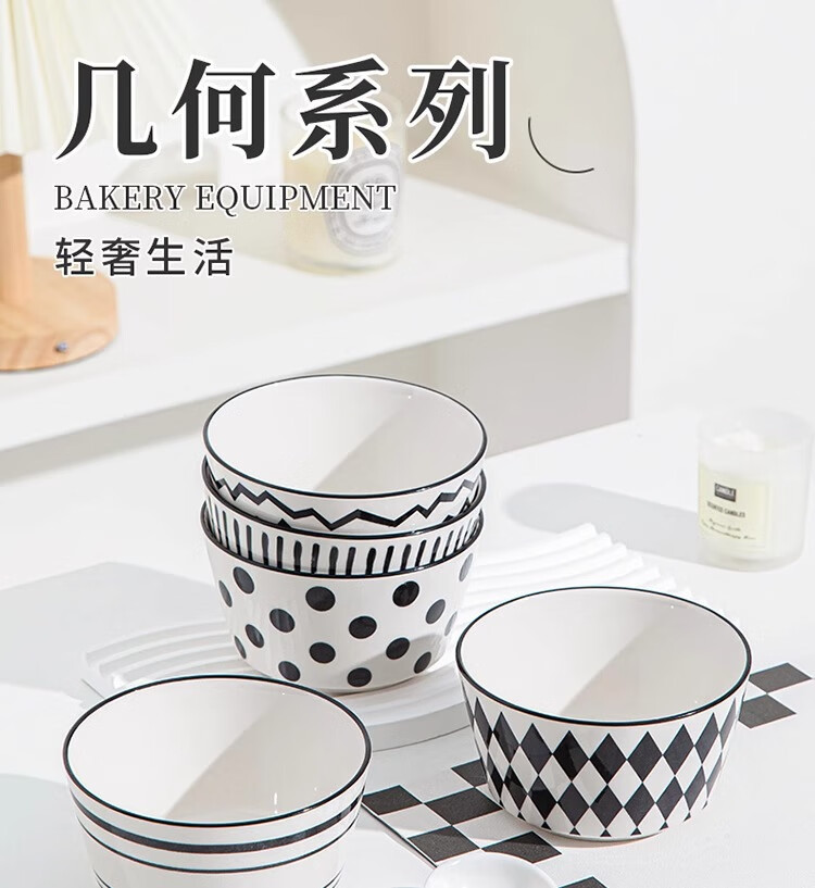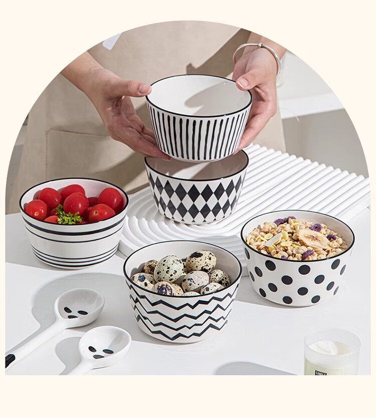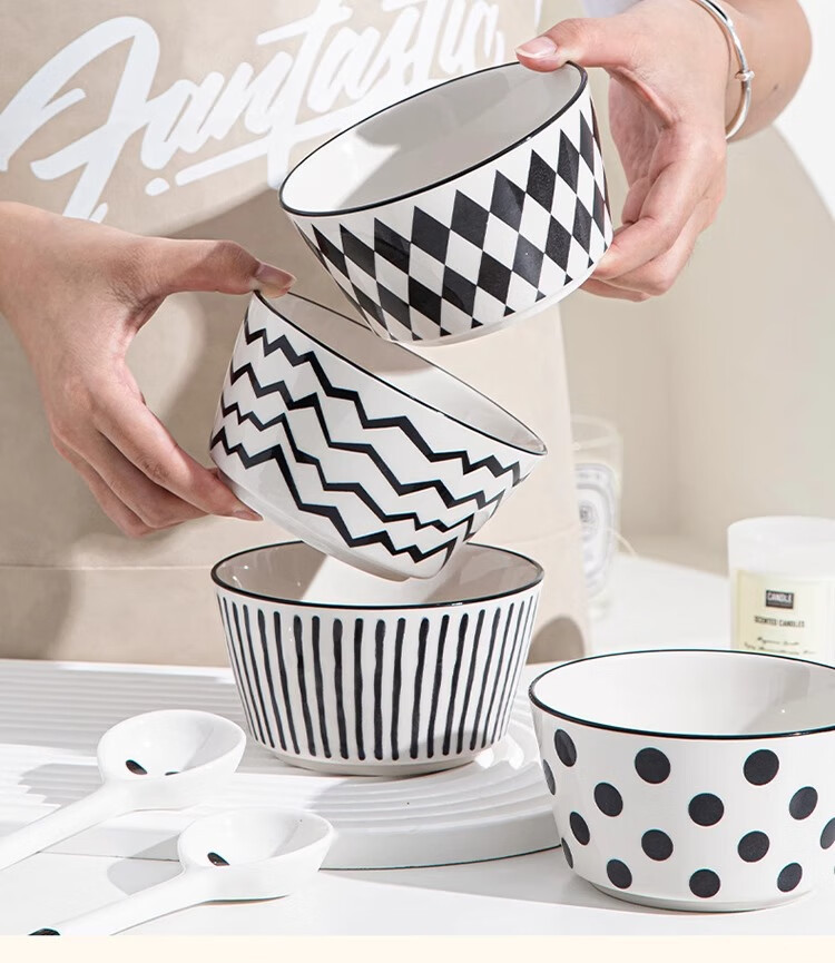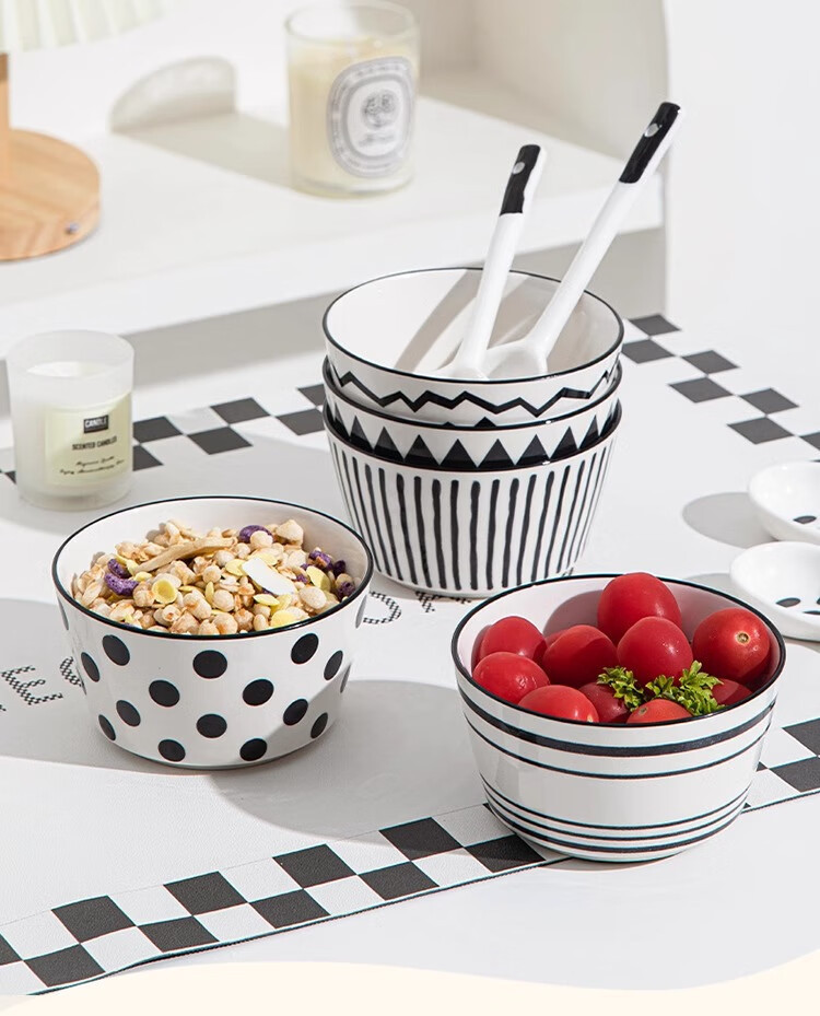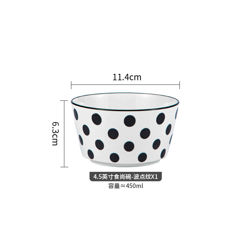 유약 컬러 그릇과 접시 햅번 스타일 흑백 간단한 밥 그릇 가정용 2023 새로운 폴카 도트 인 고급스러운 밥 그릇