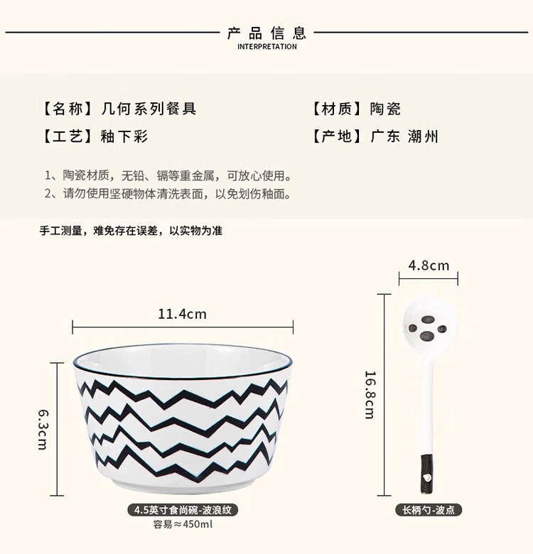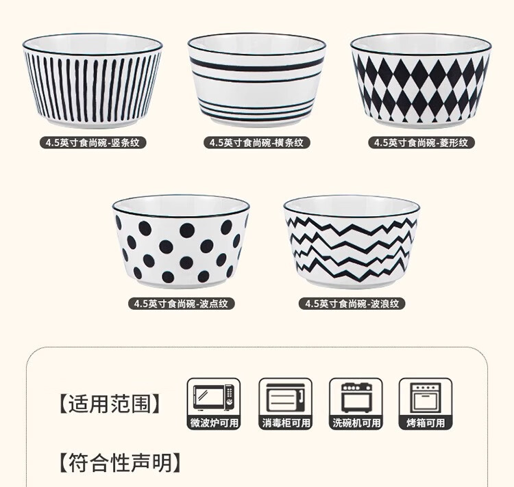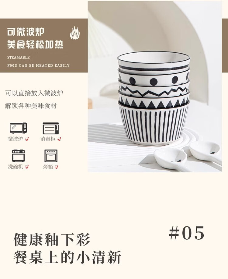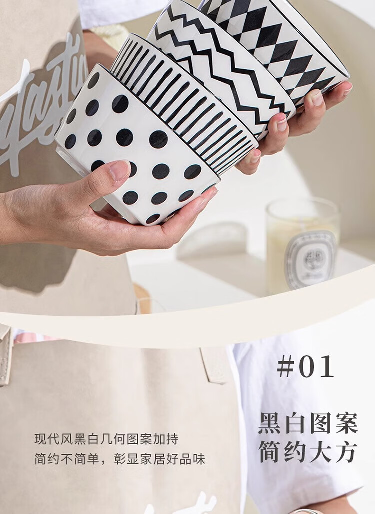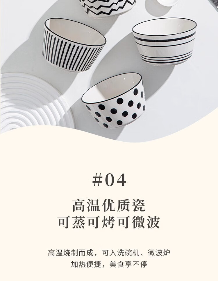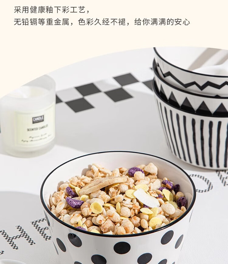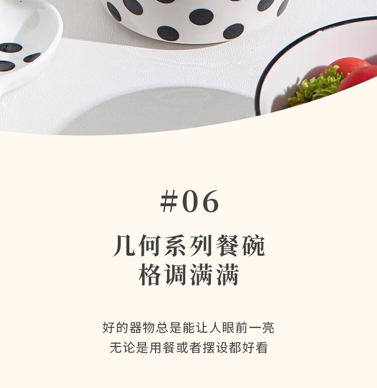 유약 컬러 그릇과 접시 햅번 스타일 흑백 간단한 밥 그릇 가정용 2023 새로운 폴카 도트 인 고급스러운 밥 그릇