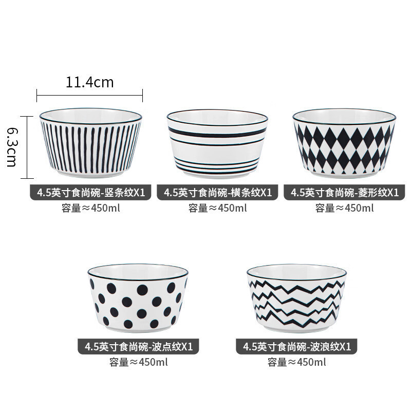 • 5개의 조각이 포함된 4.5inch개의 그릇 모듬-기하학