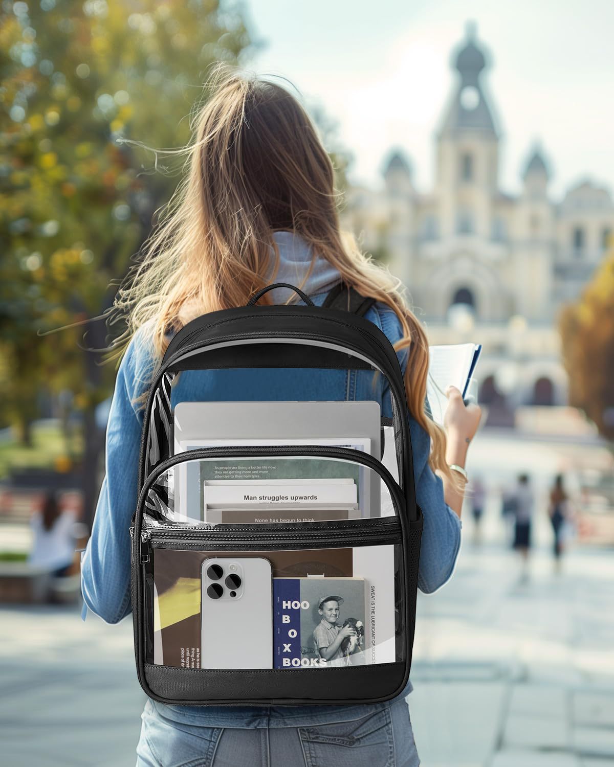 즉시 배송 가능한 PVC 투명 야외 백팩 여행용 투명 방수 백팩 남녀 공용 대용량 학생 가방스토어 가기