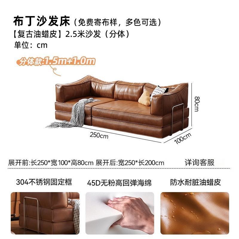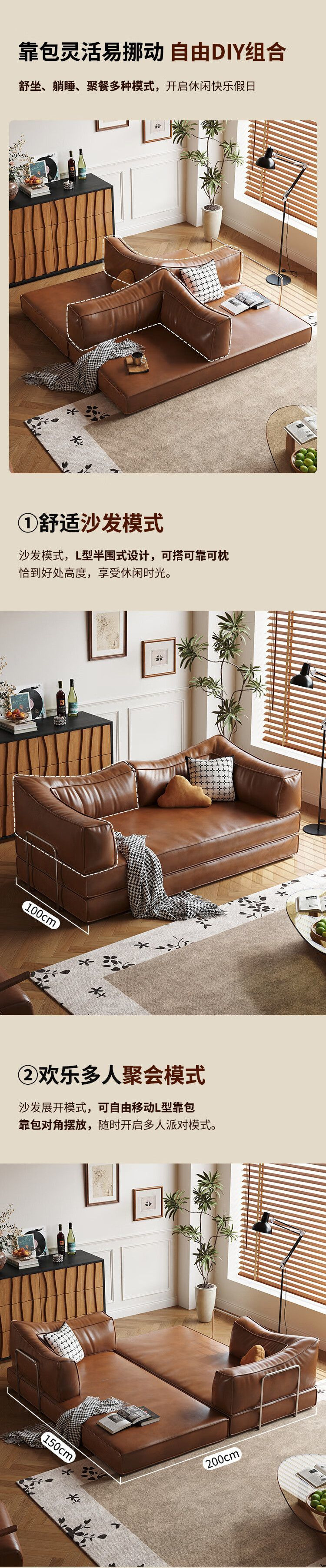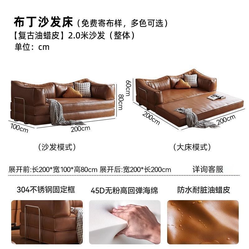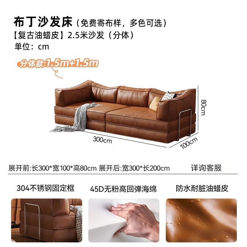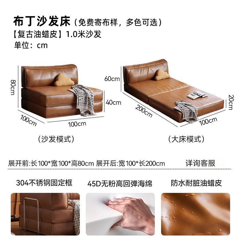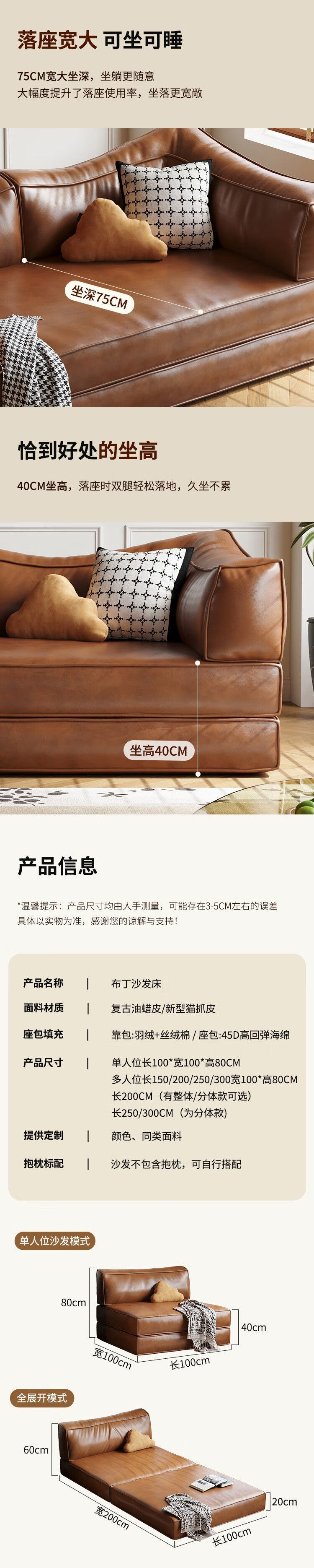 Mokujang 중세 스타일 접이식 이중 목적 푸딩 오일 왁스 가죽 소파 베드 복고풍 작은 아파트 거실 모듈 소파