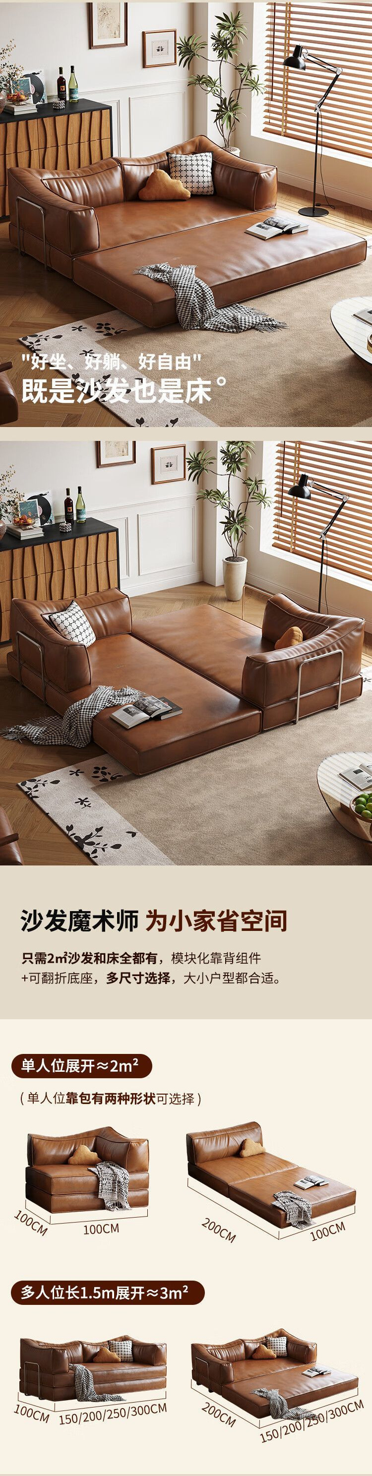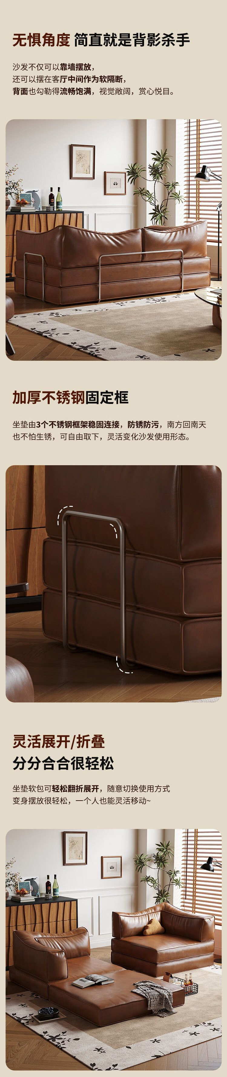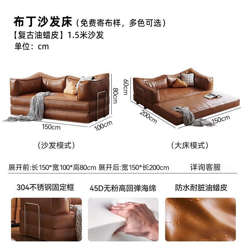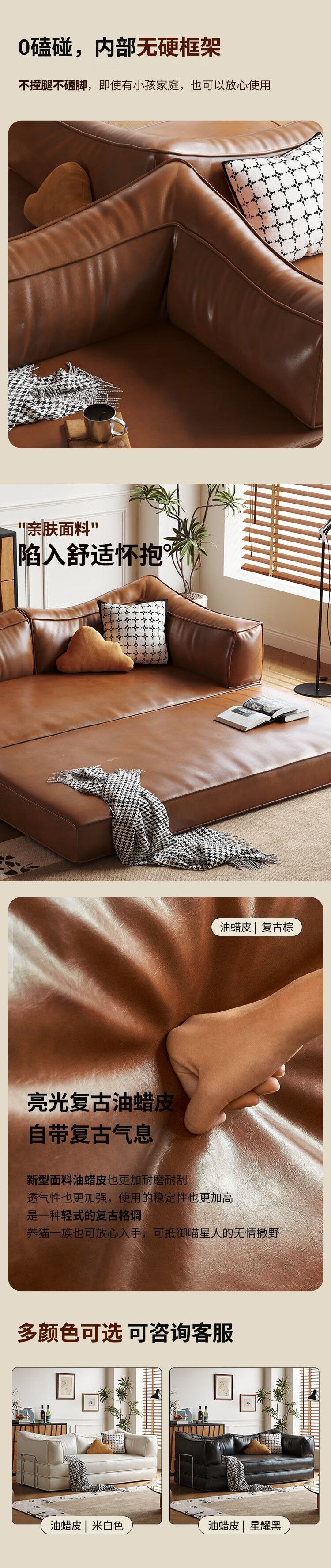 Mokujang 중세 스타일 접이식 이중 목적 푸딩 오일 왁스 가죽 소파 베드 복고풍 작은 아파트 거실 모듈 소파