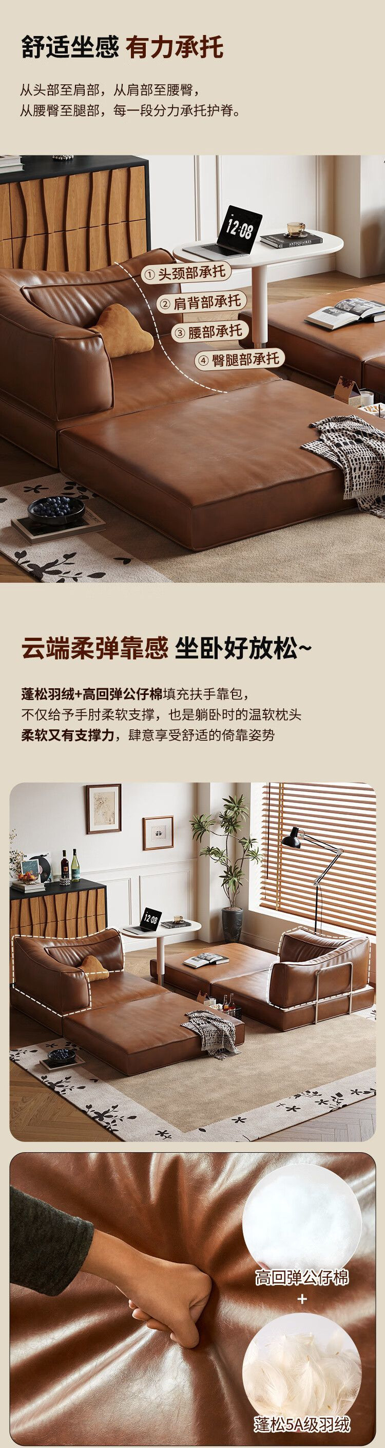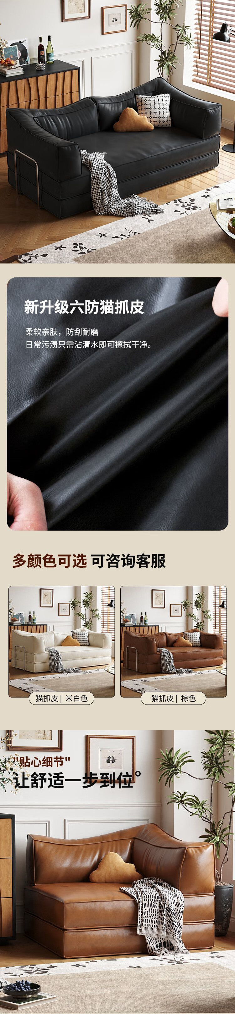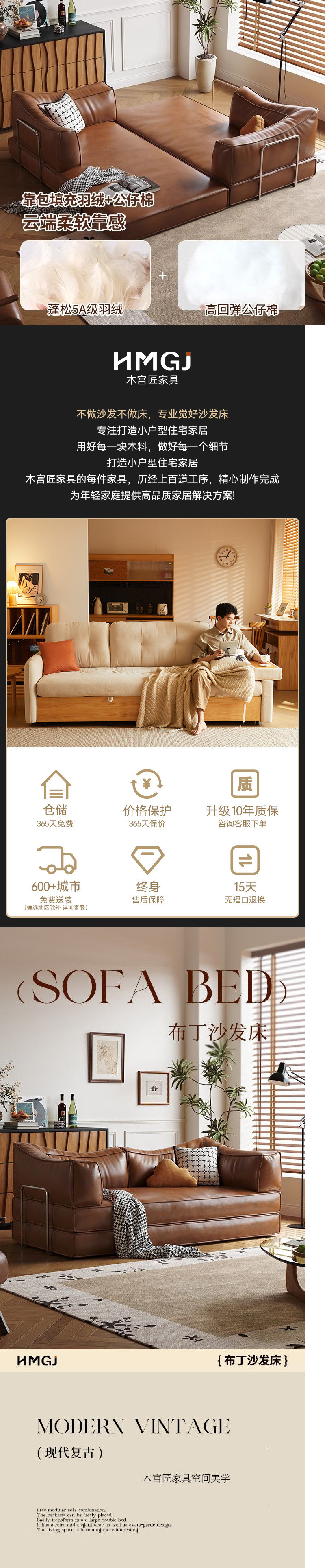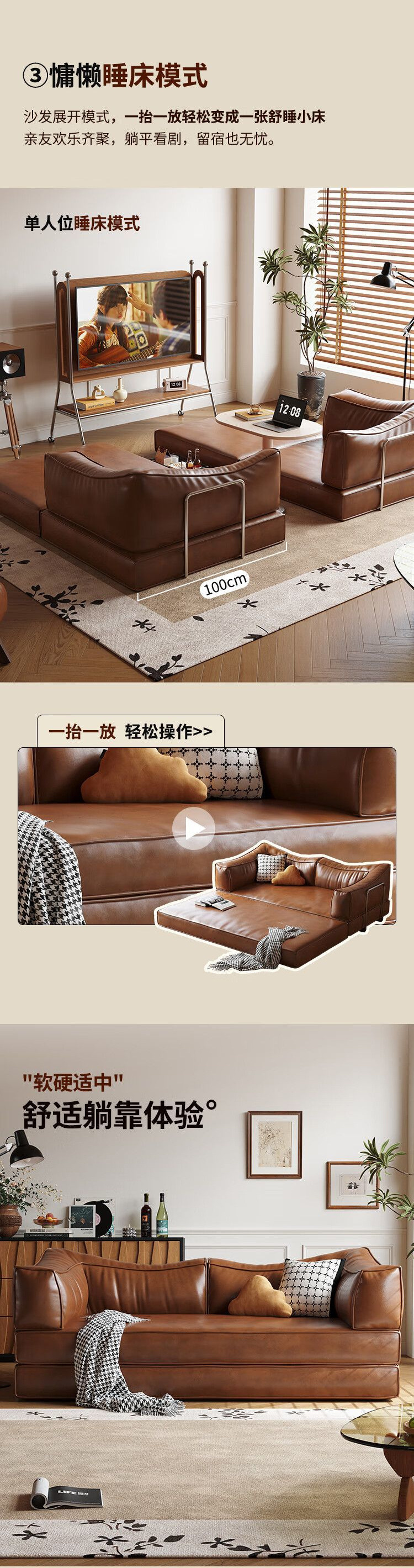 Mokujang 중세 스타일 접이식 이중 목적 푸딩 오일 왁스 가죽 소파 베드 복고풍 작은 아파트 거실 모듈 소파