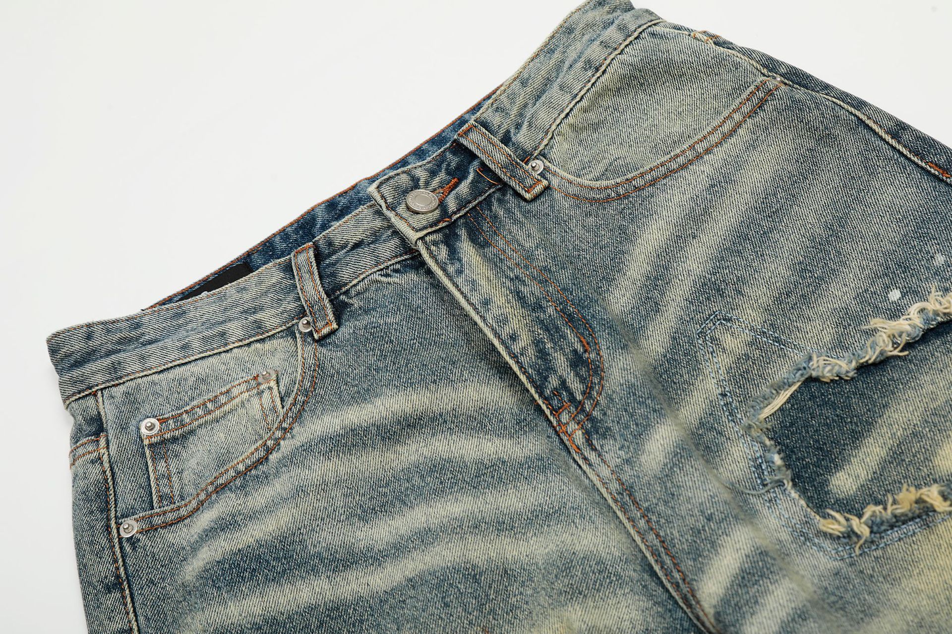 Eon Modish 25 가을 신상품 아메리칸 스트리트 패션 하이 스트리트 맞춤형 찢어진 데님 바지