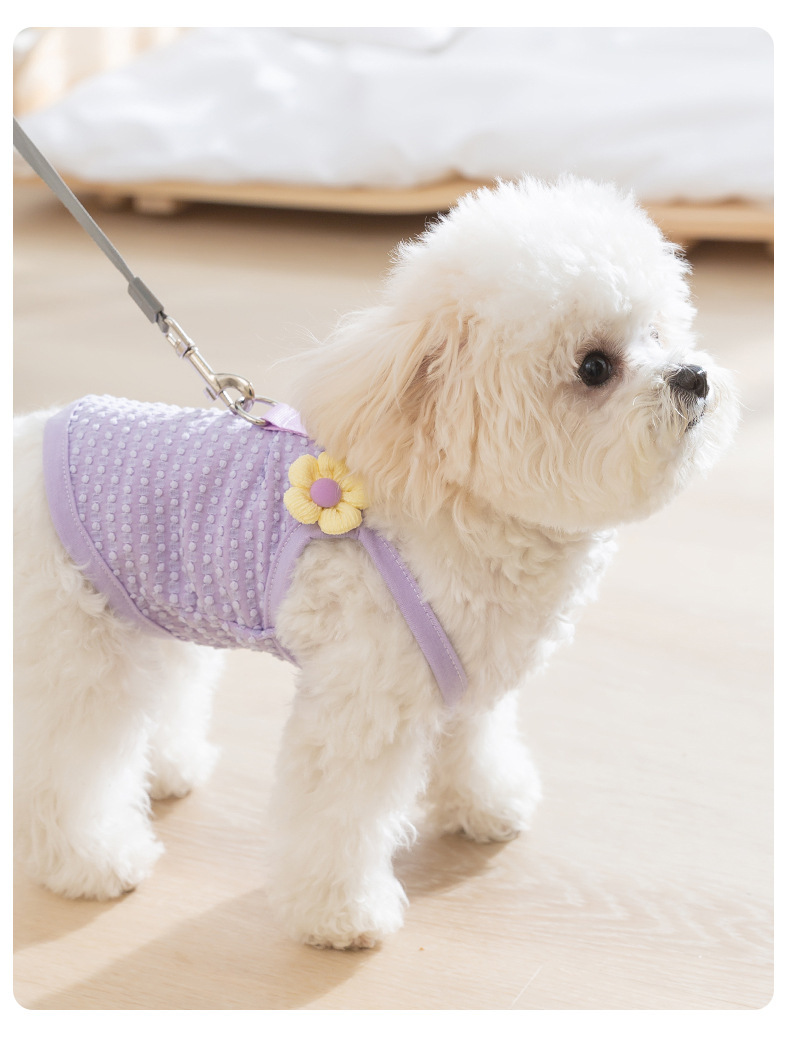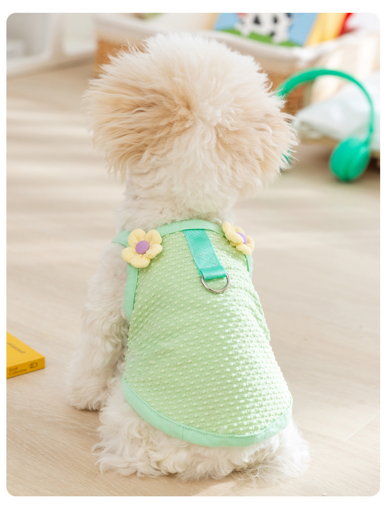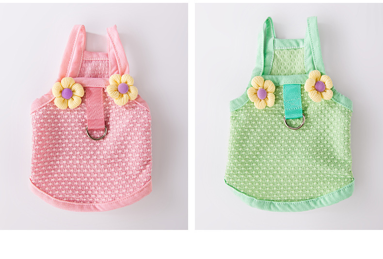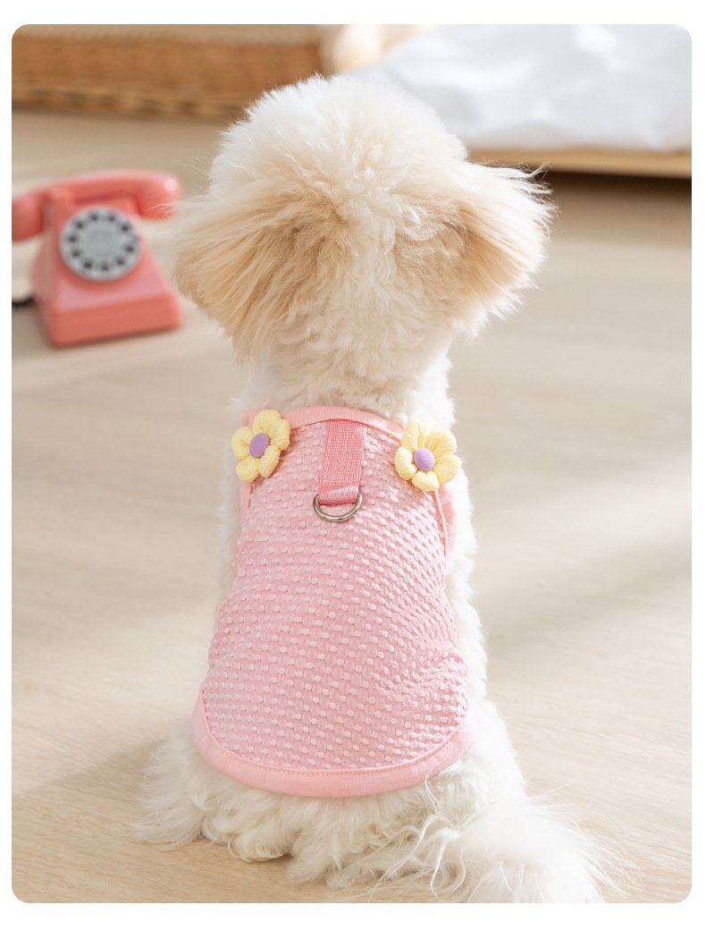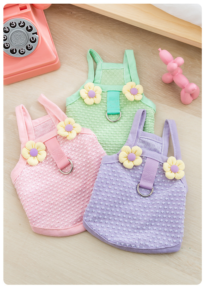 입체적인 꽃무늬가 있는 끈형 슬링 스타일의 봄여름 얇은 강아지 옷, 비숑, 요크셔, 소형 강아지 애완동물용