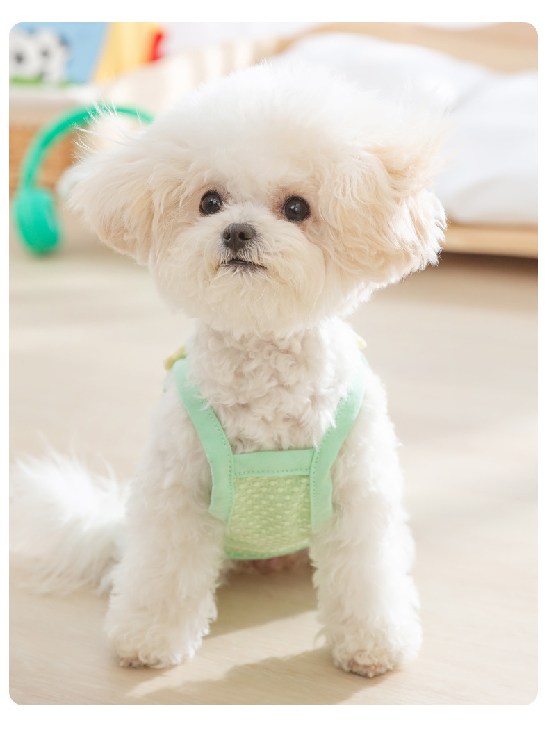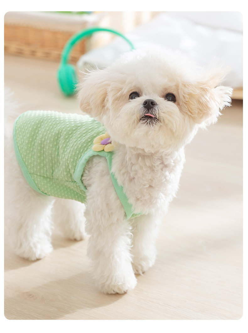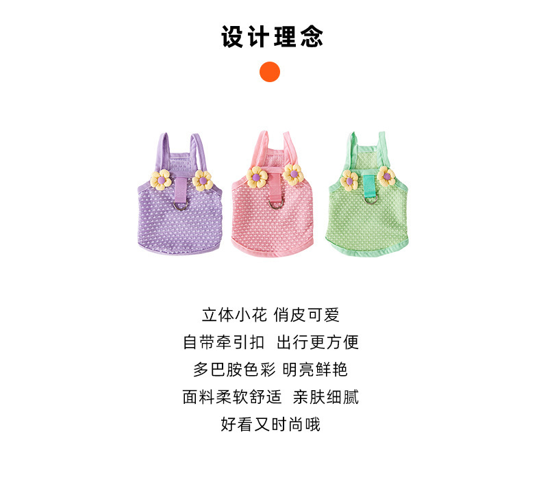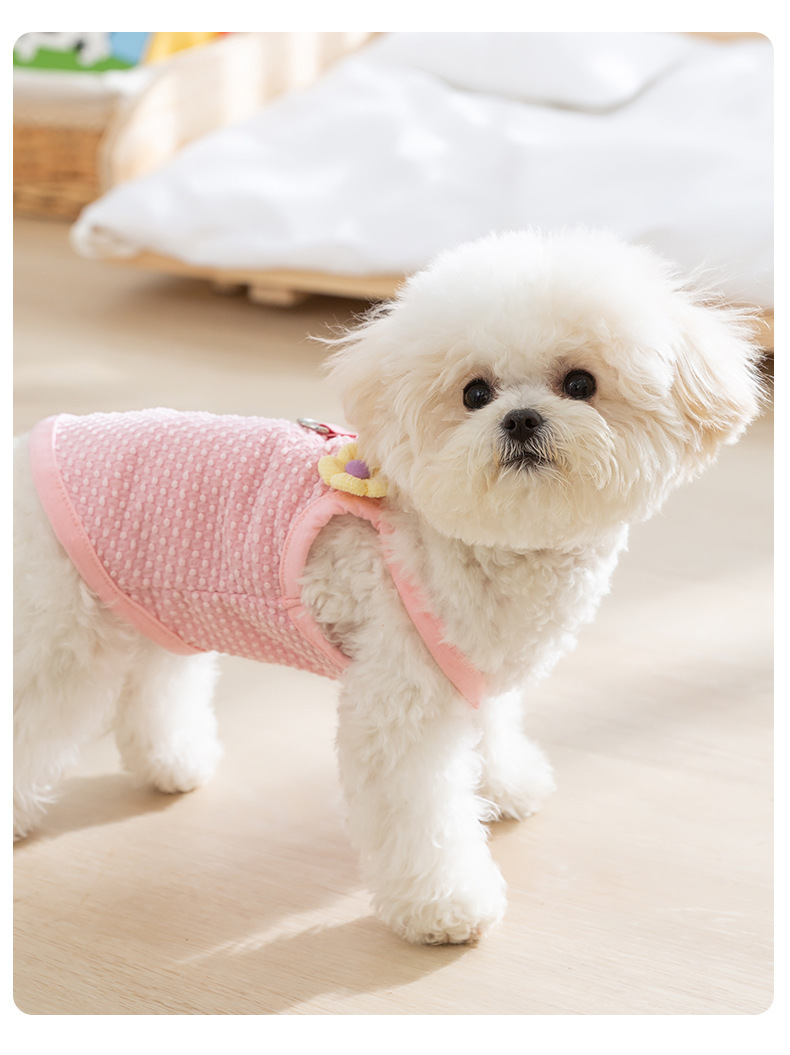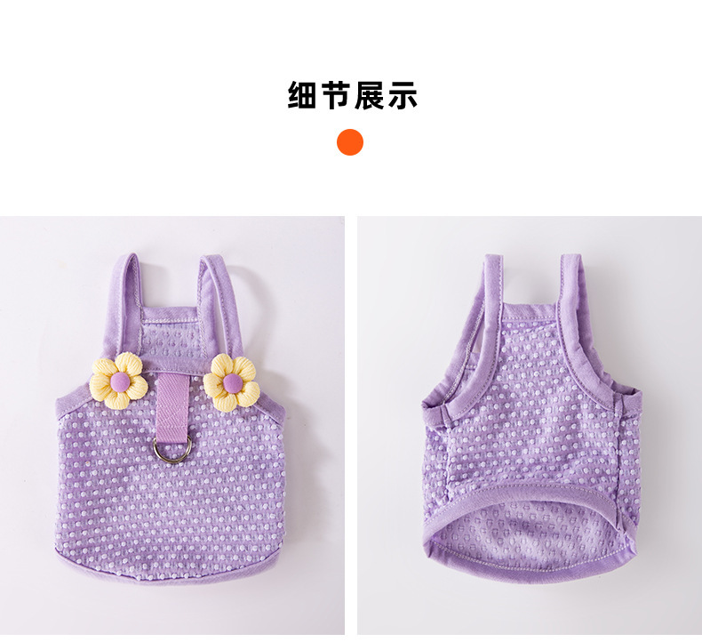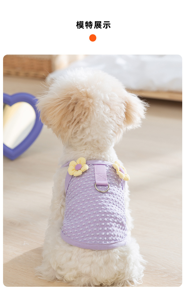 입체적인 꽃무늬가 있는 끈형 슬링 스타일의 봄여름 얇은 강아지 옷, 비숑, 요크셔, 소형 강아지 애완동물용