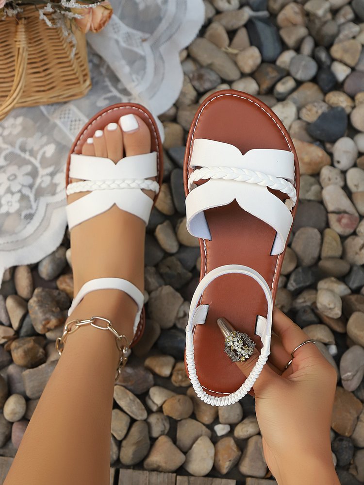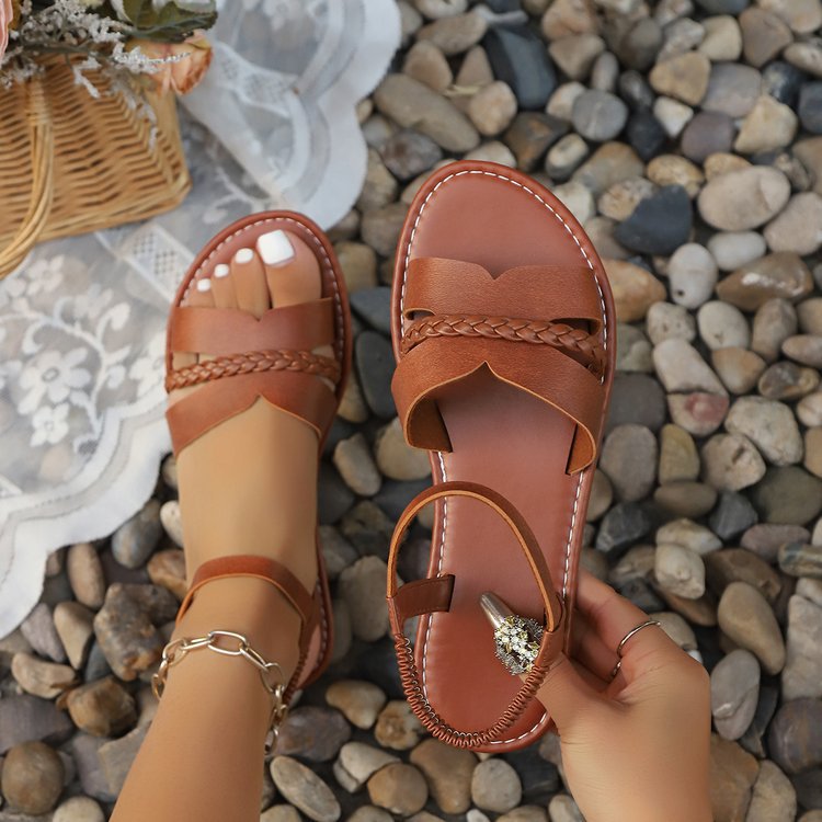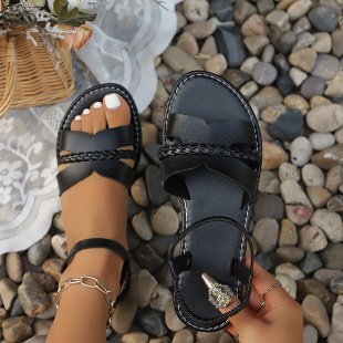2025 봄/여름 신상품 크로스보더 대형 여성 신발 샌들 플랫 밴드 편안한 직조 밴드 아마존 배송