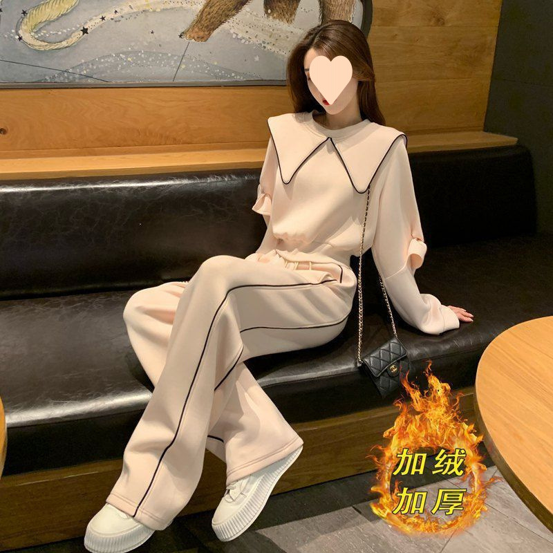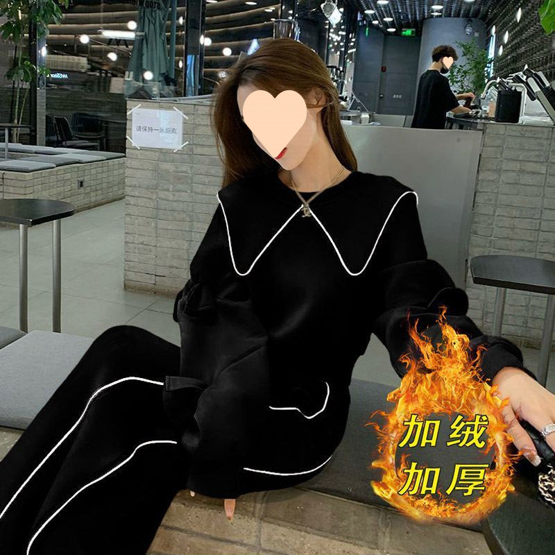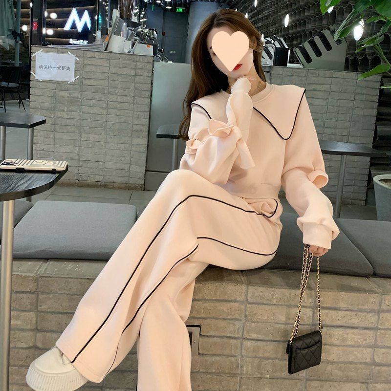 Xiaoxiangfeng 캐주얼 운동복 정장 바지 가을, 겨울 여성 2025 새로운 작은 패션 스포츠 바지 투피스 세트