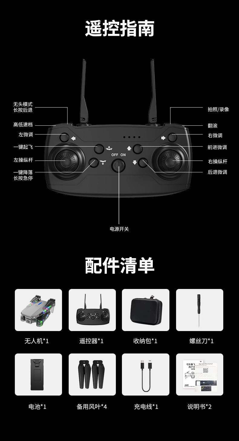 E99D 항공기 모델 드론 낙하 방지 쿼드콥터 HD 항공 사진 접이식 어린이 E88D 조명 원격 제어 항공기스토어 가기