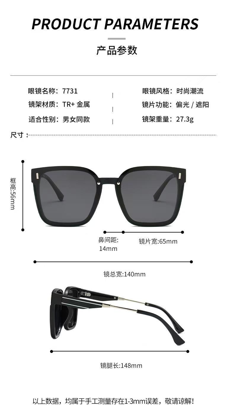 남성용 대형 프레임 편광 선글라스, 여성용 품질 패션 차양 및 자외선 차단제 Douyin 라이브 방송 새로운 인터넷 연예인 Douyin
