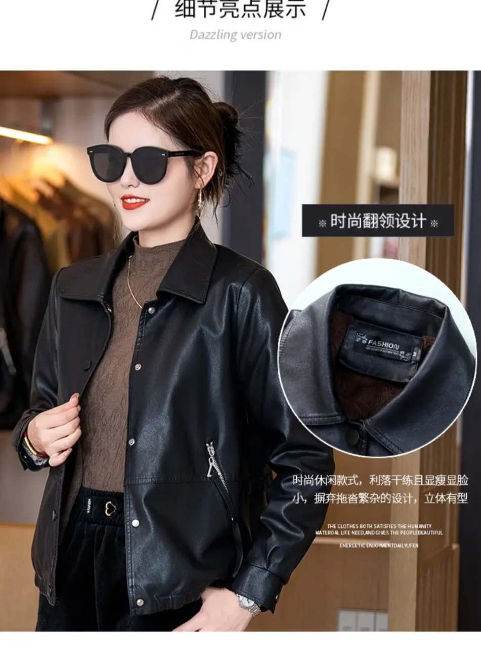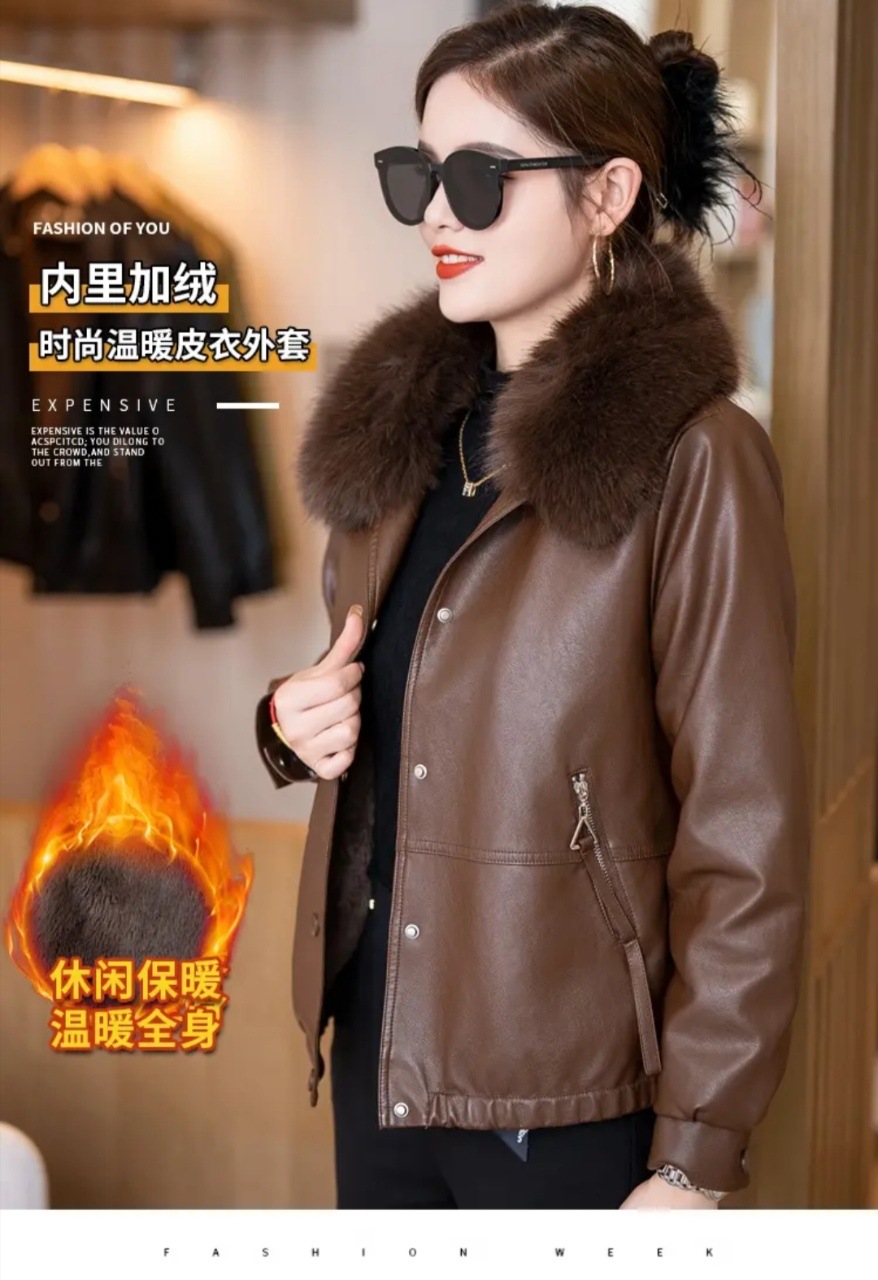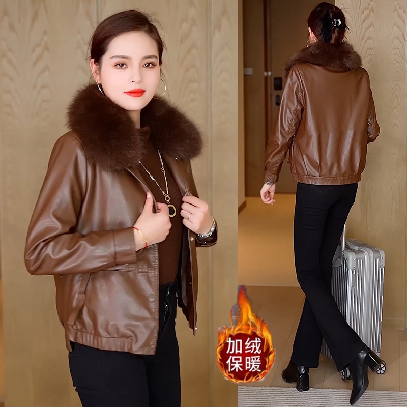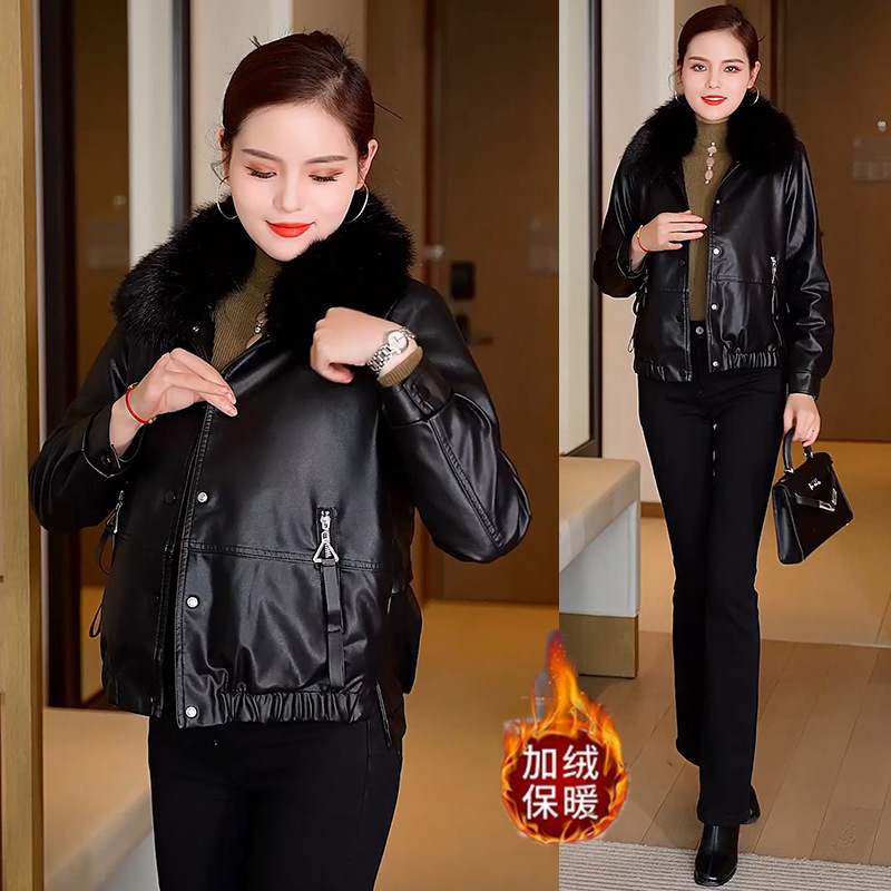 여성용 가죽 자켓, 벨벳 안감, 두꺼운 2025 겨울 신상품, 인기 상품, 따뜻하고 방한 기능, 탈부착 가능한 큰 모피 칼라 가죽 자켓스토어 가기