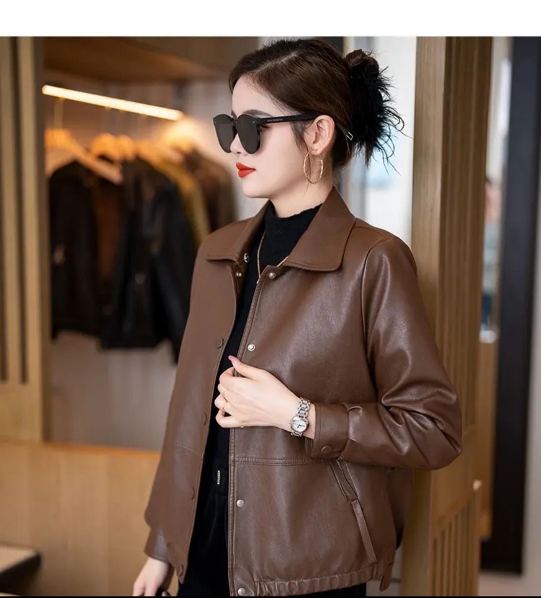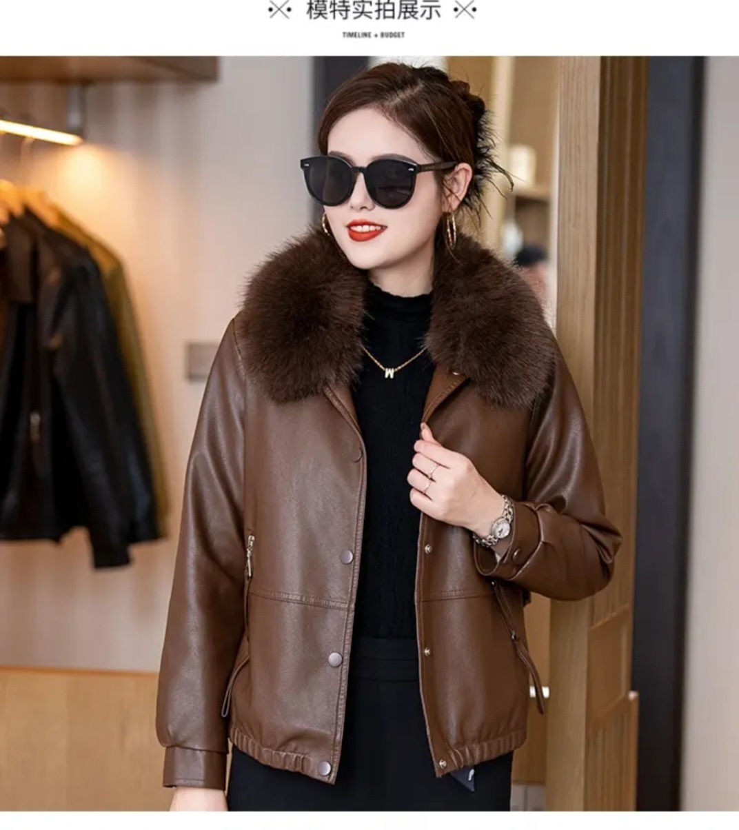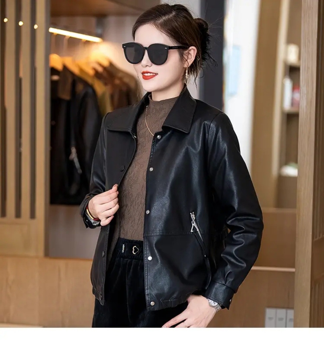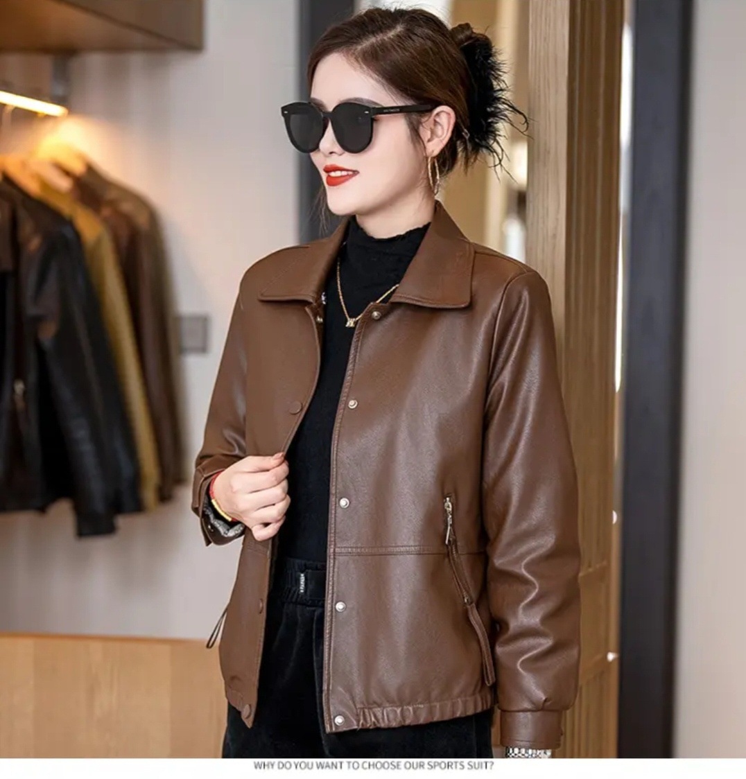 여성용 가죽 자켓, 벨벳 안감, 두꺼운 2025 겨울 신상품, 인기 상품, 따뜻하고 방한 기능, 탈부착 가능한 큰 모피 칼라 가죽 자켓스토어 가기