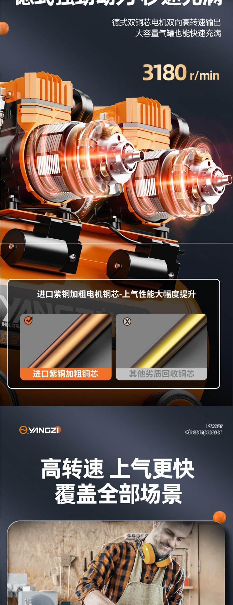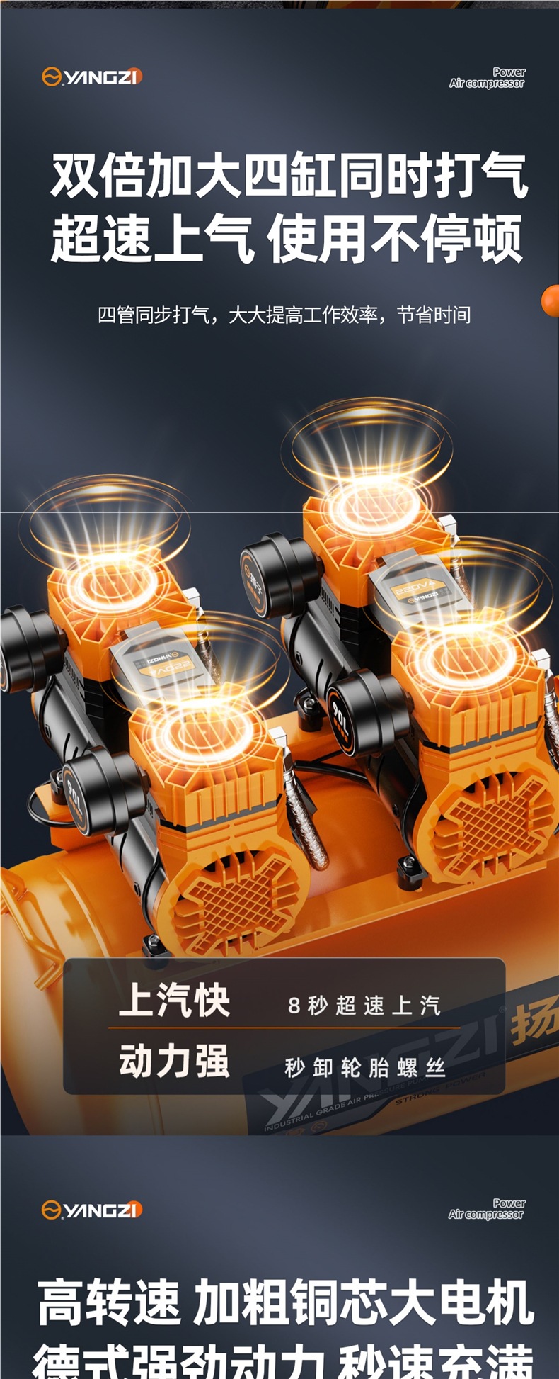 • 25L부터 디지털 압력 디스플레이로 업그레이드|전반적인 재료는 동급 제품보다 훨씬 높습니다. - 3990W-95L [4기통 듀얼 모터 + LCD 듀얼 솔레노이드 밸브] 산업용 등급 압력