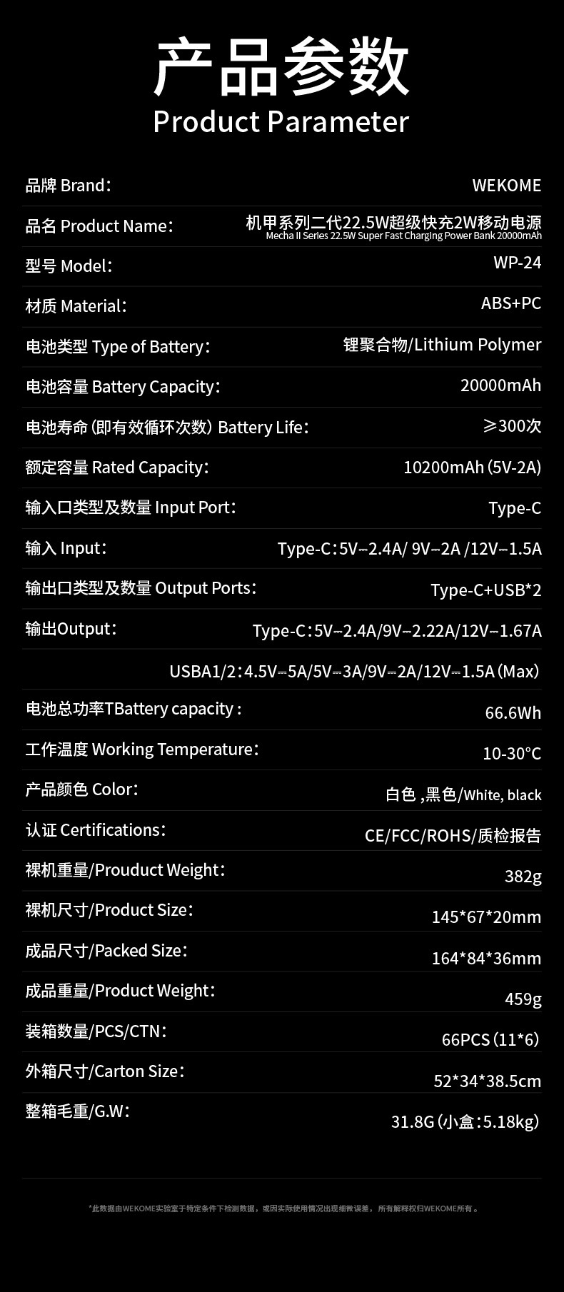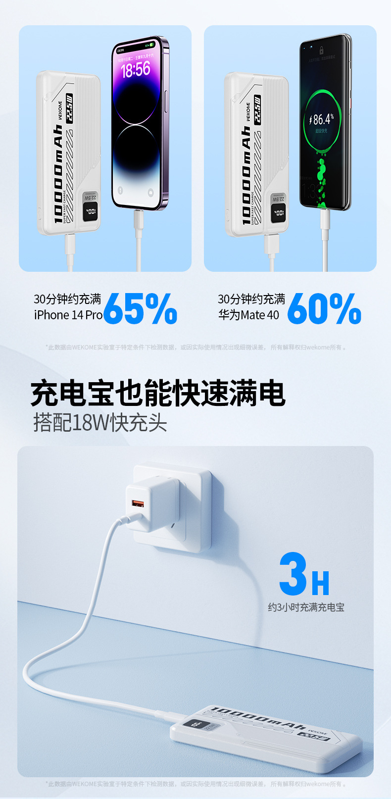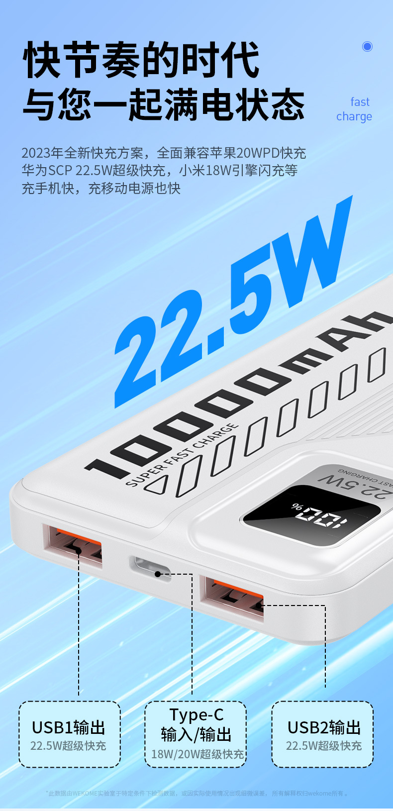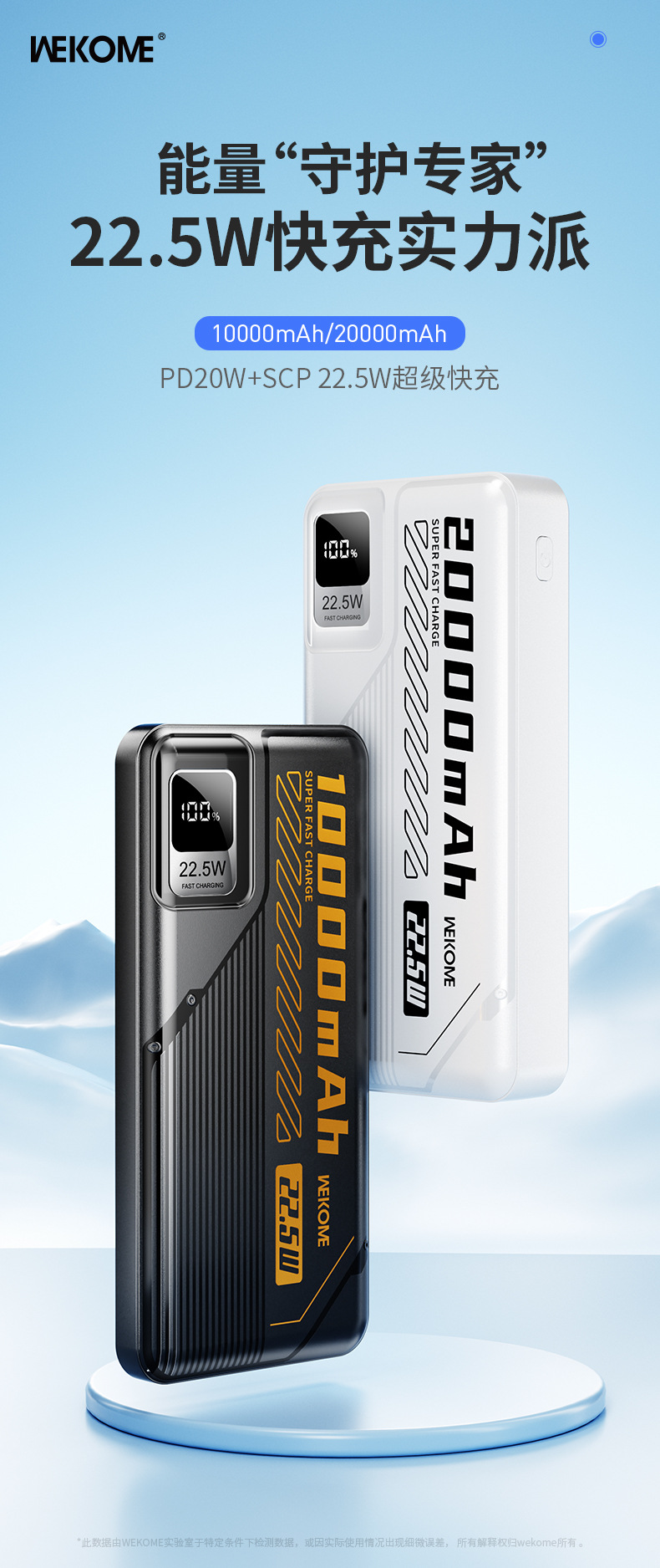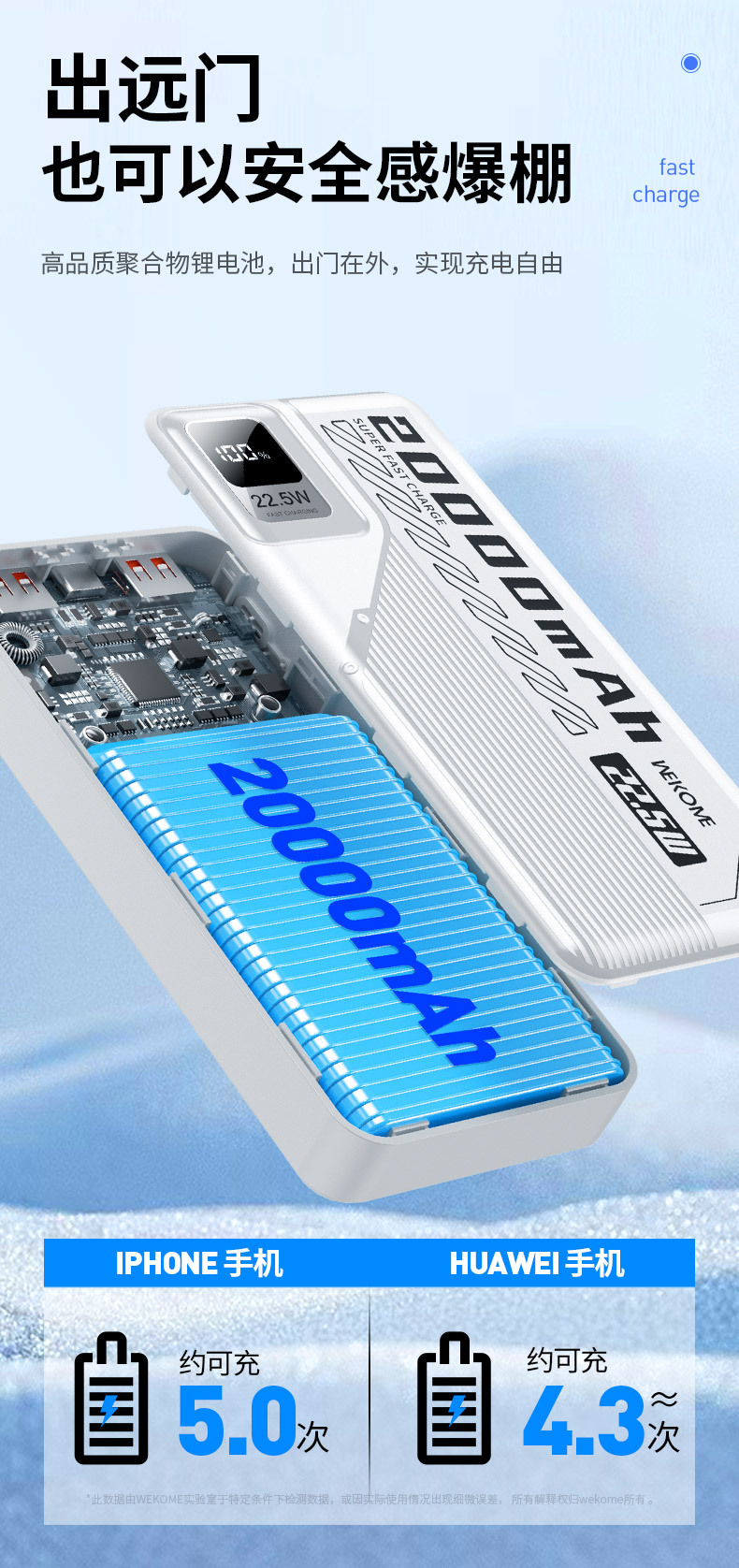 Wekome 디지털 디스플레이 전력 3C 인증 20000mAh 대용량에는 2선식 22.5W 고속 충전 모바일 전원 공급 장치가 함께 제공됩니다.스토어 가기