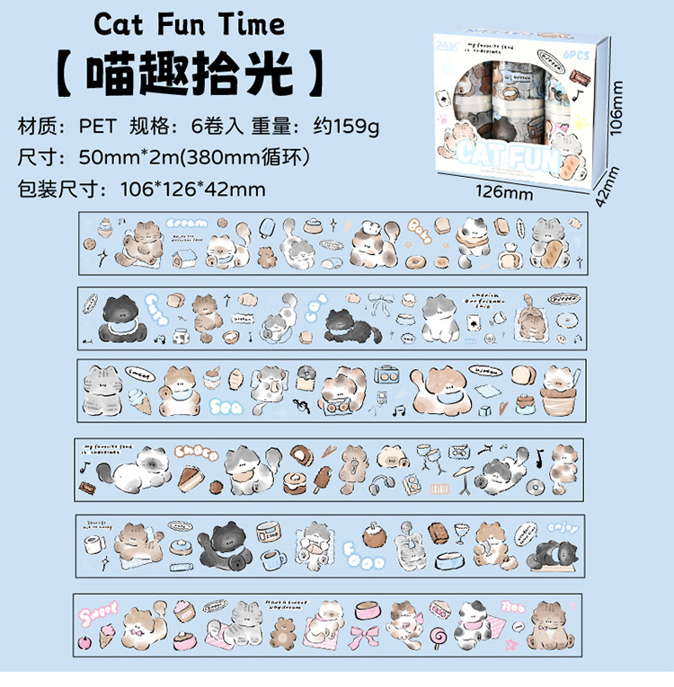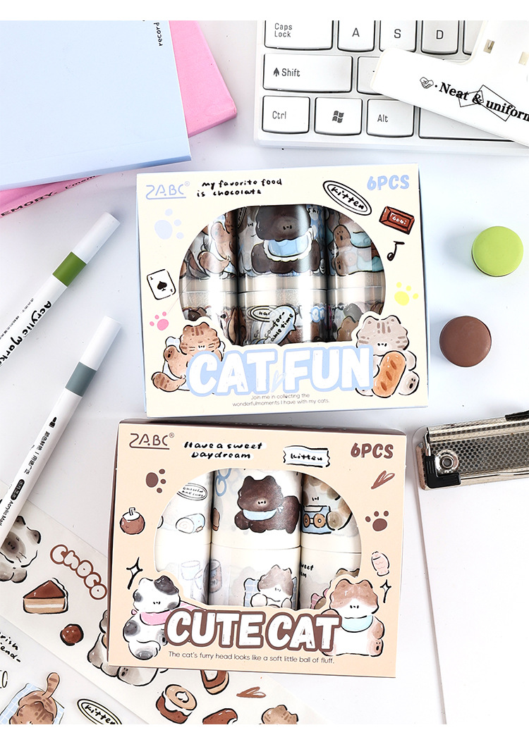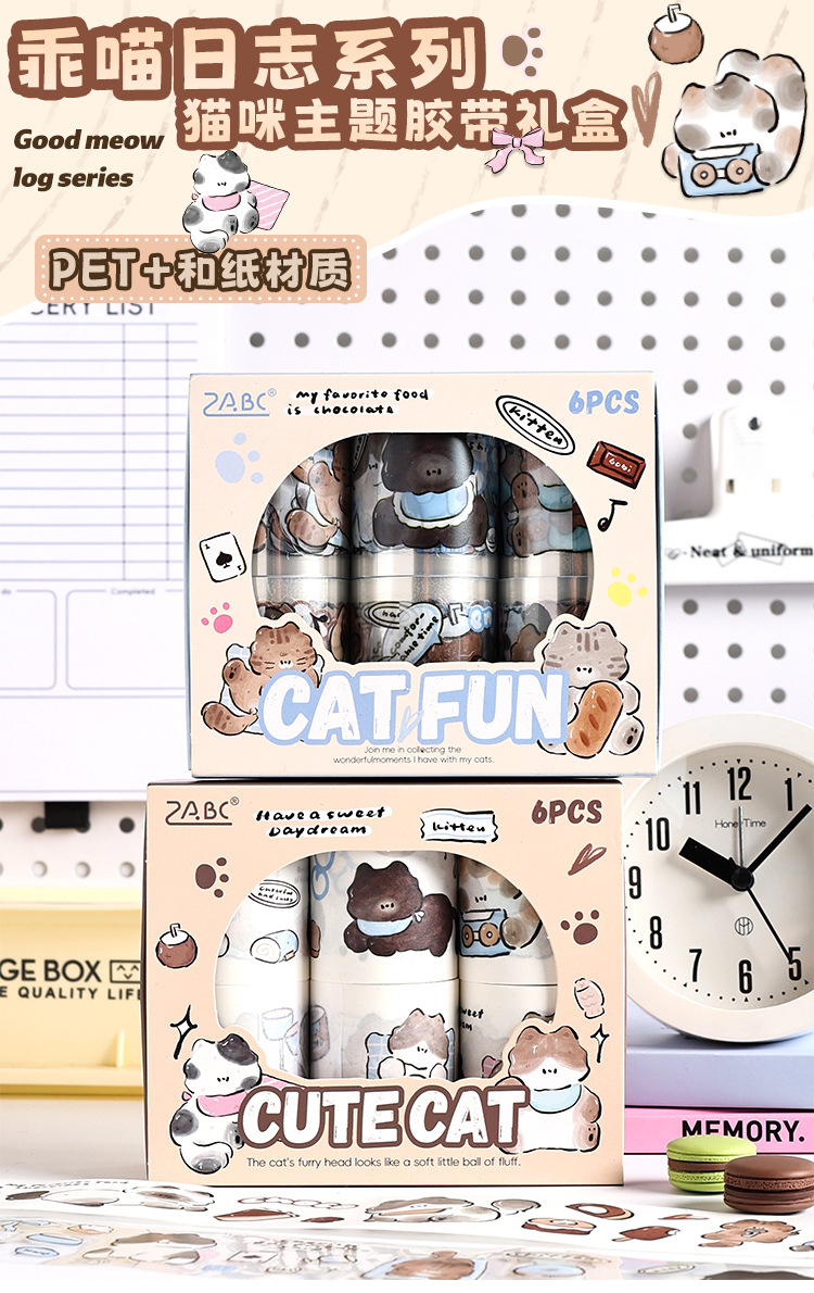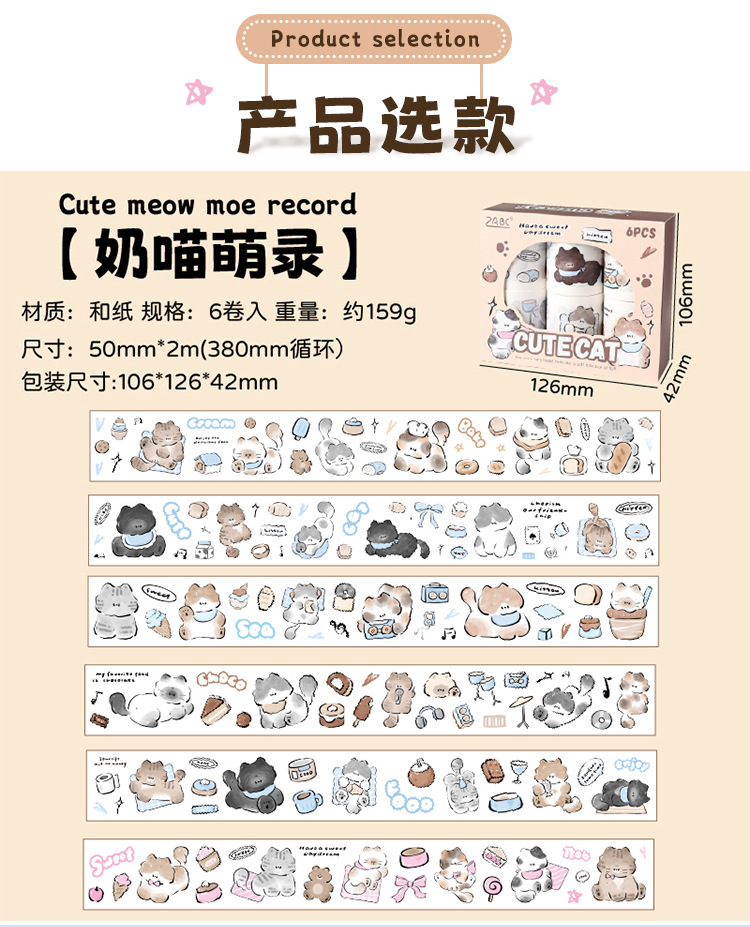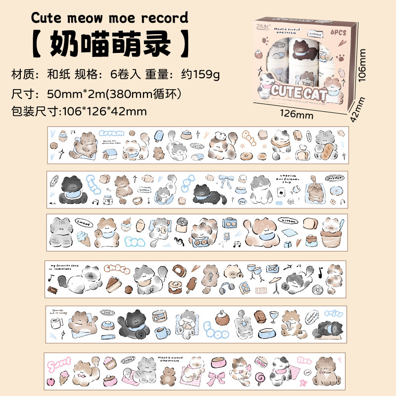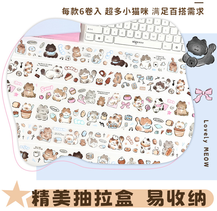 Yuezhen Cai Meow 일기 필름 테이프 핸드북 테이프 국경 간 스티커 귀여운 와시 테이프 애완 동물 핸드북 테이프스토어 가기