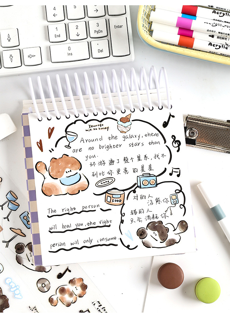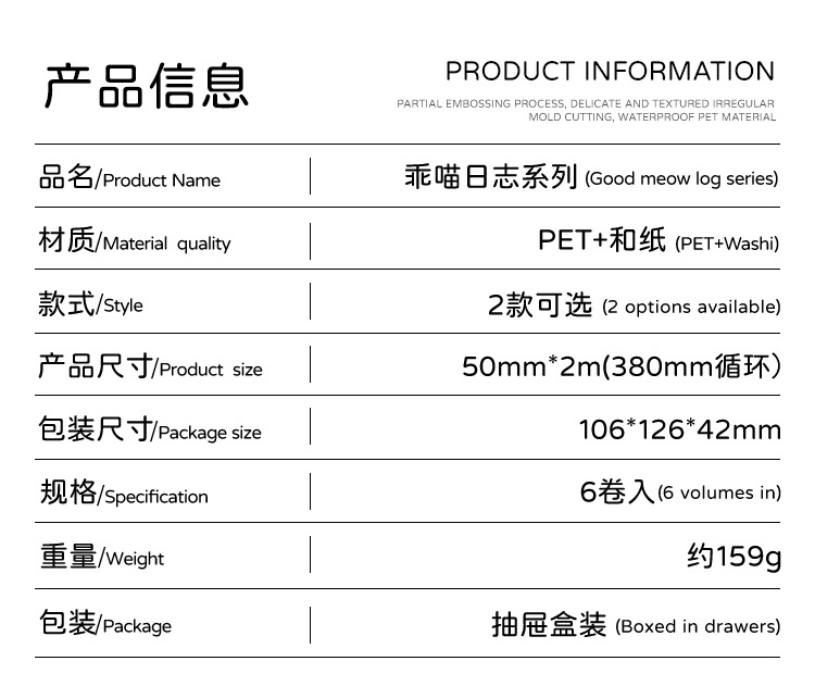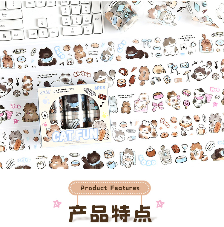 Yuezhen Cai Meow 일기 필름 테이프 핸드북 테이프 국경 간 스티커 귀여운 와시 테이프 애완 동물 핸드북 테이프