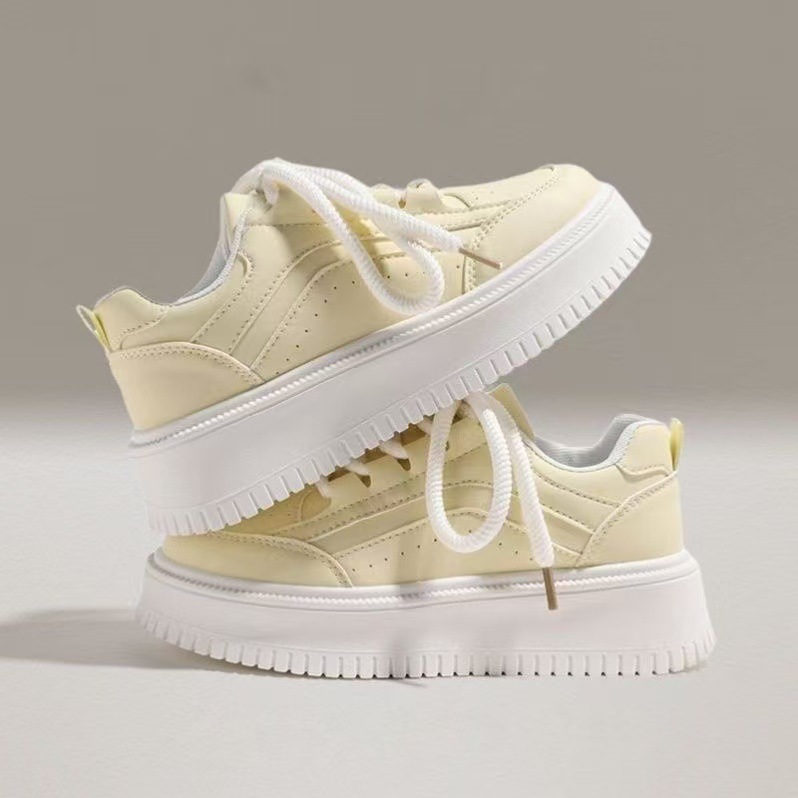 여성을 위한 레몬 옐로우 화이트 슈즈, 다재다능한 2025 봄 새로운 두꺼운 밑창 학생 시크 슈즈, 여성용 운동화