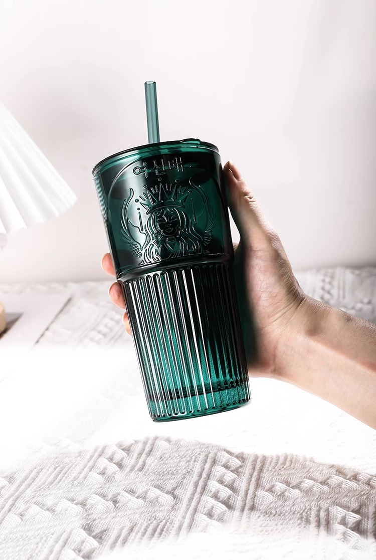 풍모크린 여성용 커피잔, 빨대가 달린 고급스러운 유리컵, 대용량 마시는 컵스토어 가기