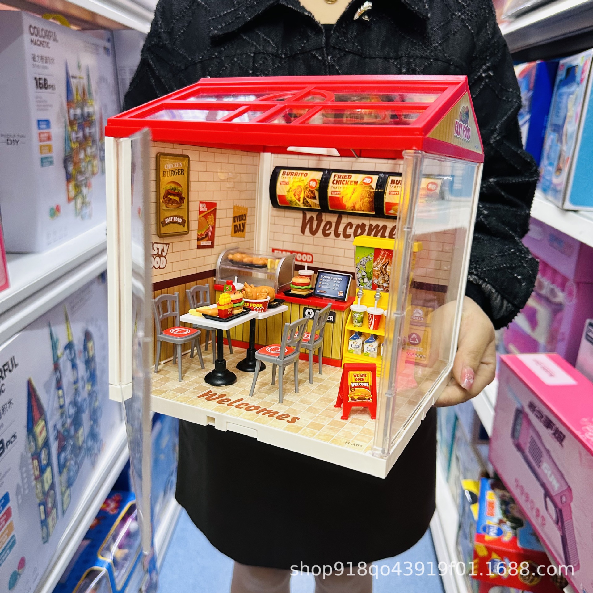 자일레 DIY 대도시 및 마을 슈퍼 월드 스토어 침실 주방 조립식 소형 집 장면 어린이 장난감 여자용스토어 가기