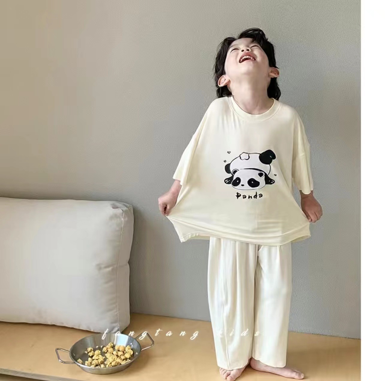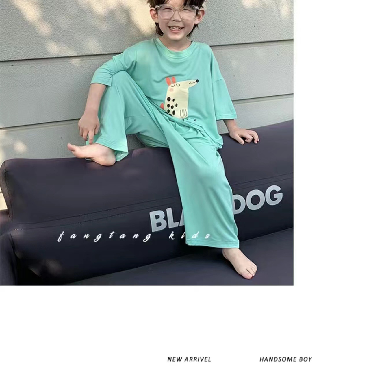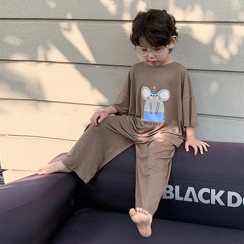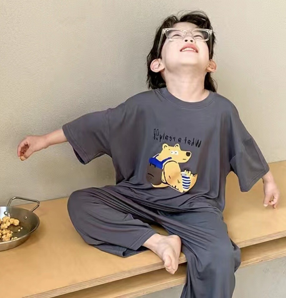 어린이 잠옷 여름 얼음 실크 얇은 새로운 스타일 소년 반팔 바지 가정 의류 세트 큰 어린이 소년 에어컨스토어 가기