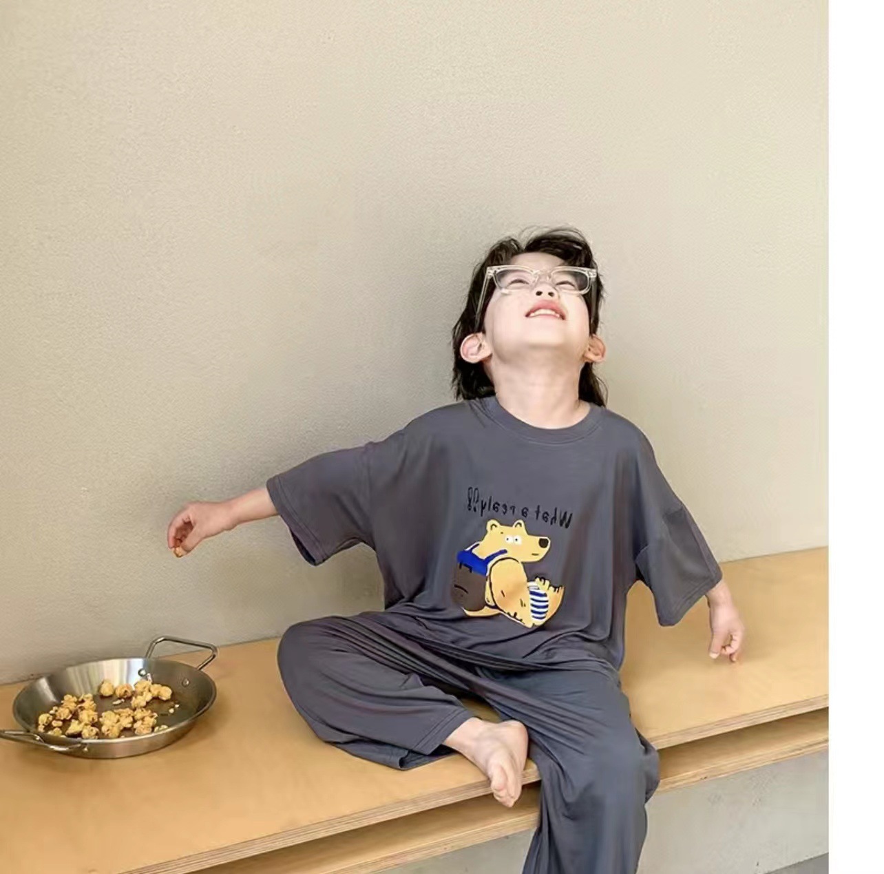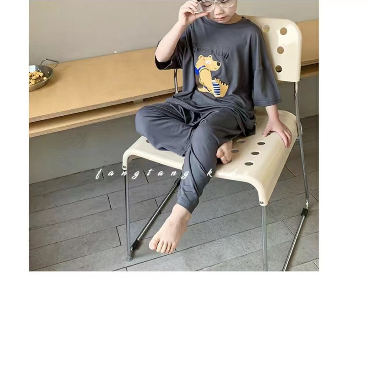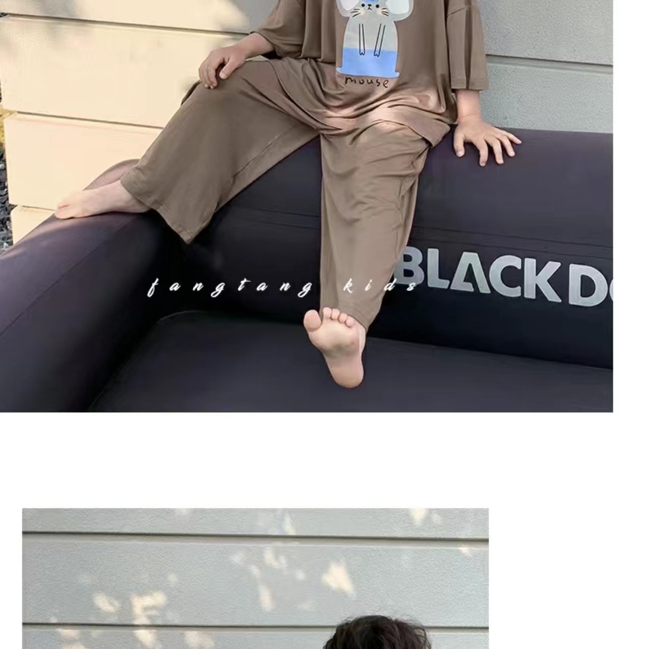어린이 잠옷 여름 얼음 실크 얇은 새로운 스타일 소년 반팔 바지 가정 의류 세트 큰 어린이 소년 에어컨스토어 가기