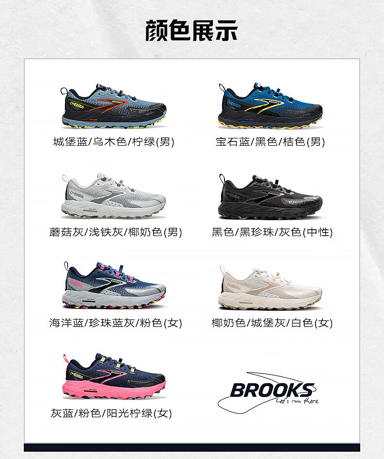 BROOKS Cascadia18 Mountain Rock 남성용 및 여성용 크로스 컨트리 운동화 등산 미끄럼 방지 운동화스토어 가기