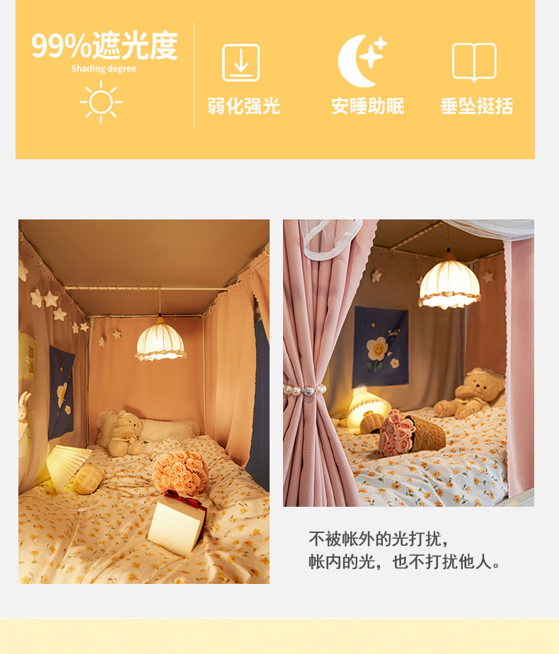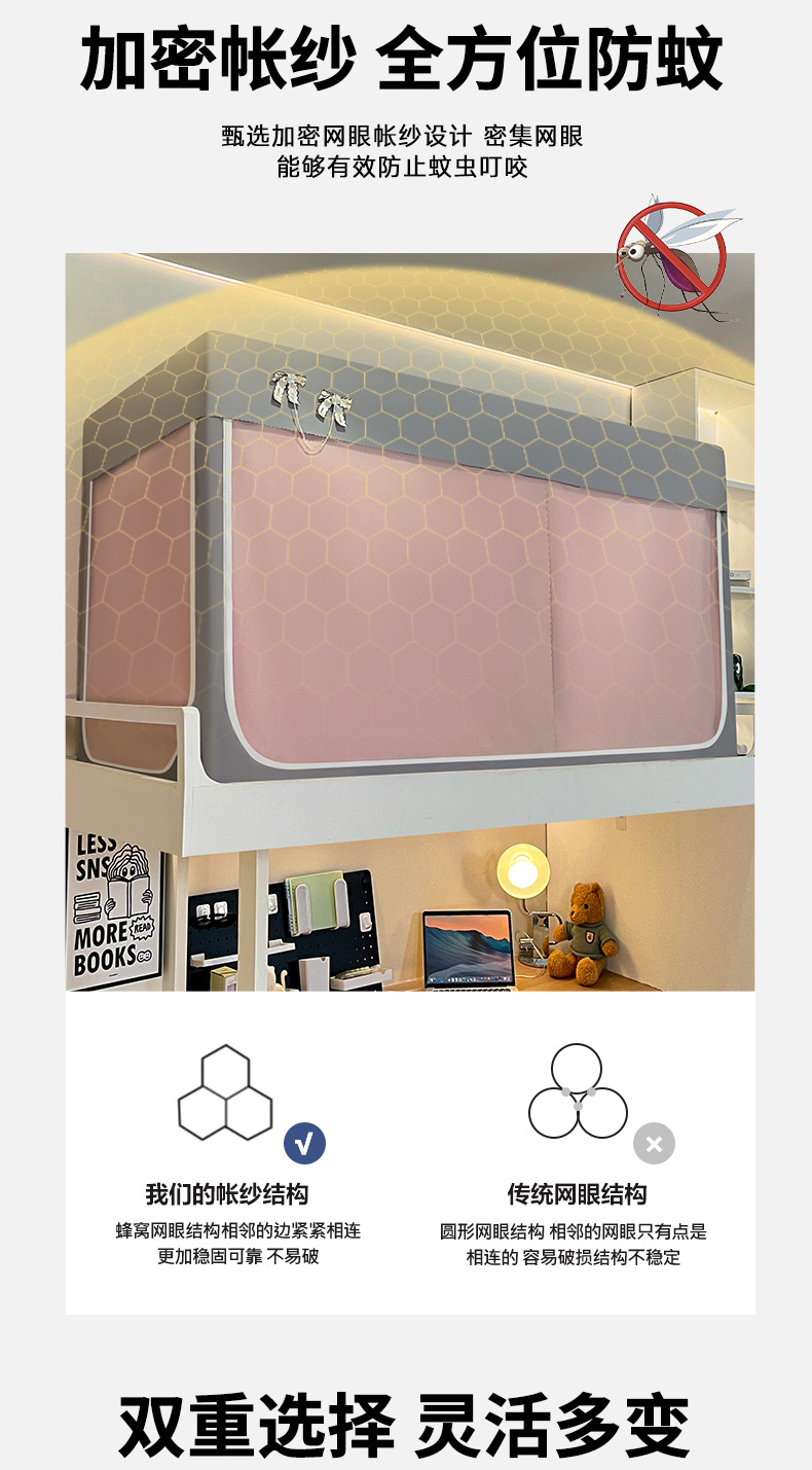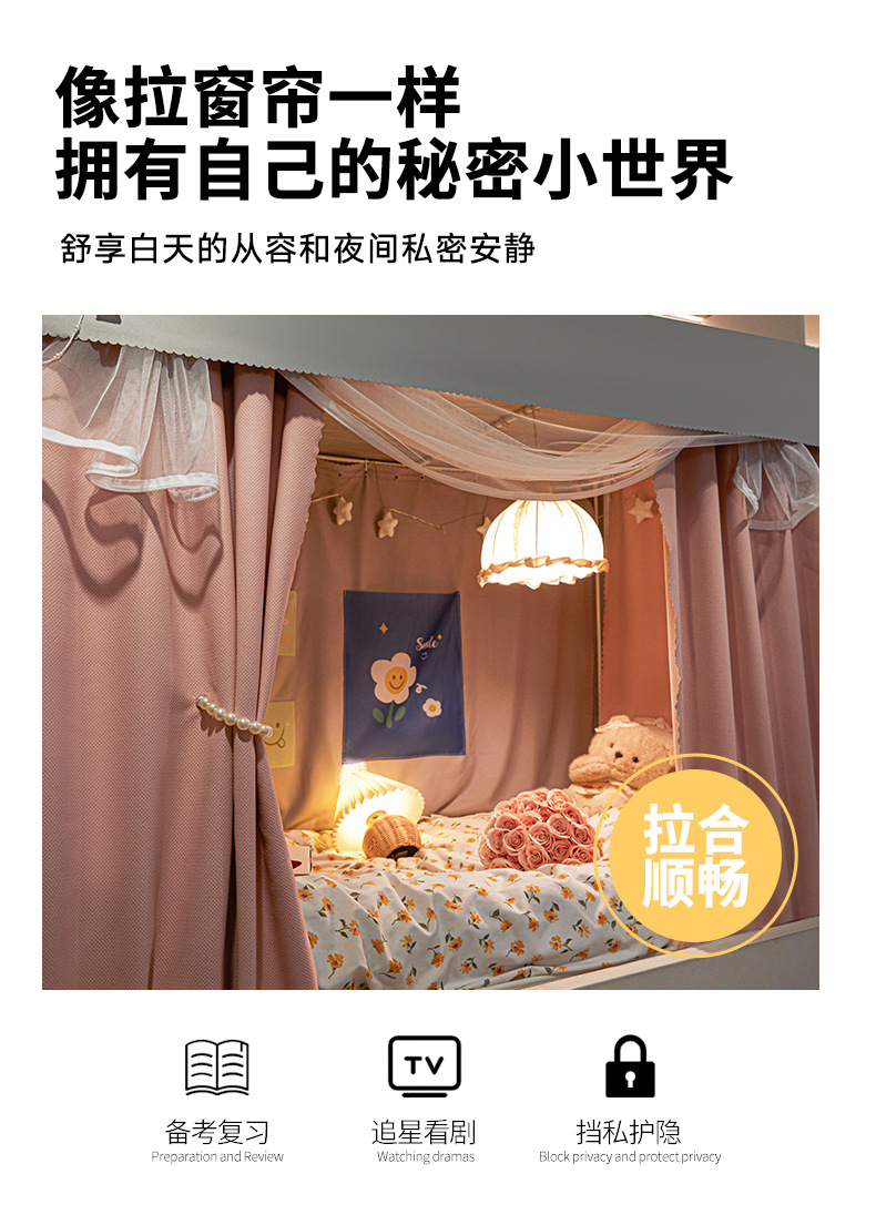 강력한 차광 기능을 갖춘 학생 기숙사 모기장, 상하층 침대용 범용 침대 커튼, 기숙사 전용