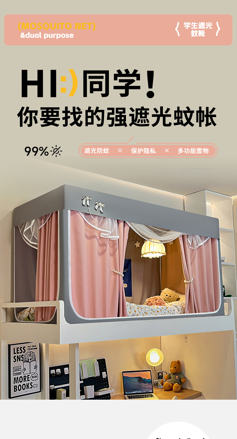 강력한 차광 기능을 갖춘 학생 기숙사 모기장, 상하층 침대용 범용 침대 커튼, 기숙사 전용스토어 가기