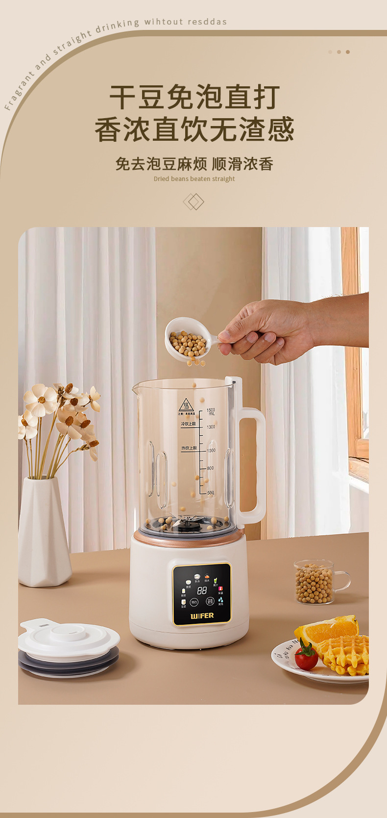 3~4인용 가정용 완전 자동 1~2인용 무필터 스마트 두유기, 다기능 주스 및 조리기