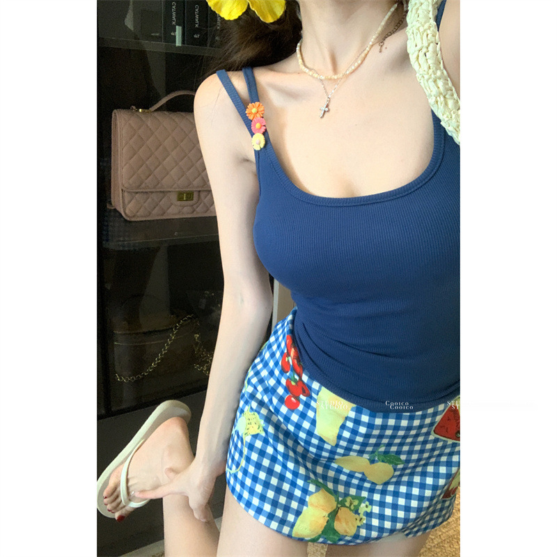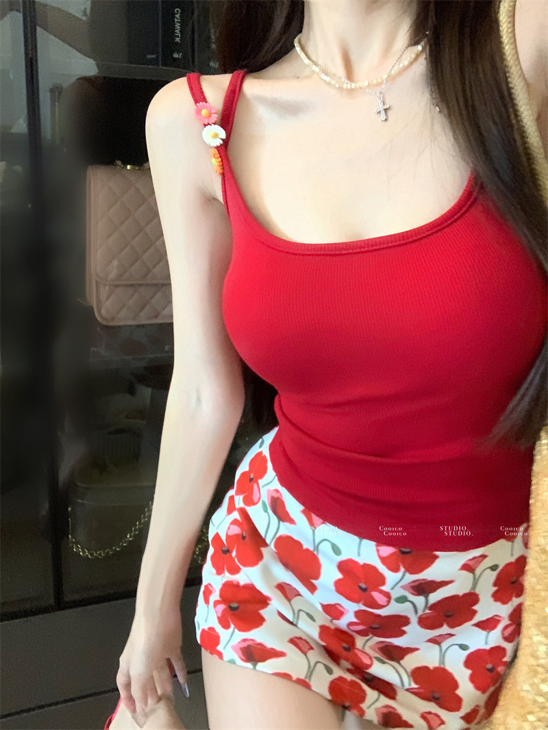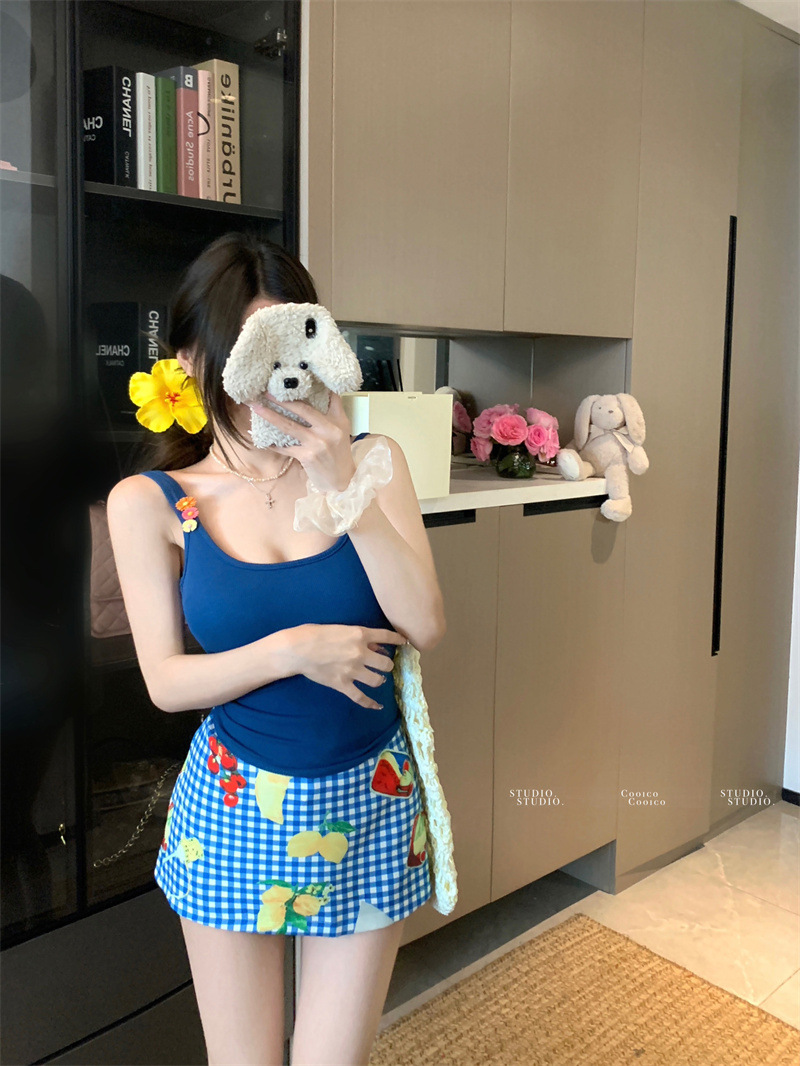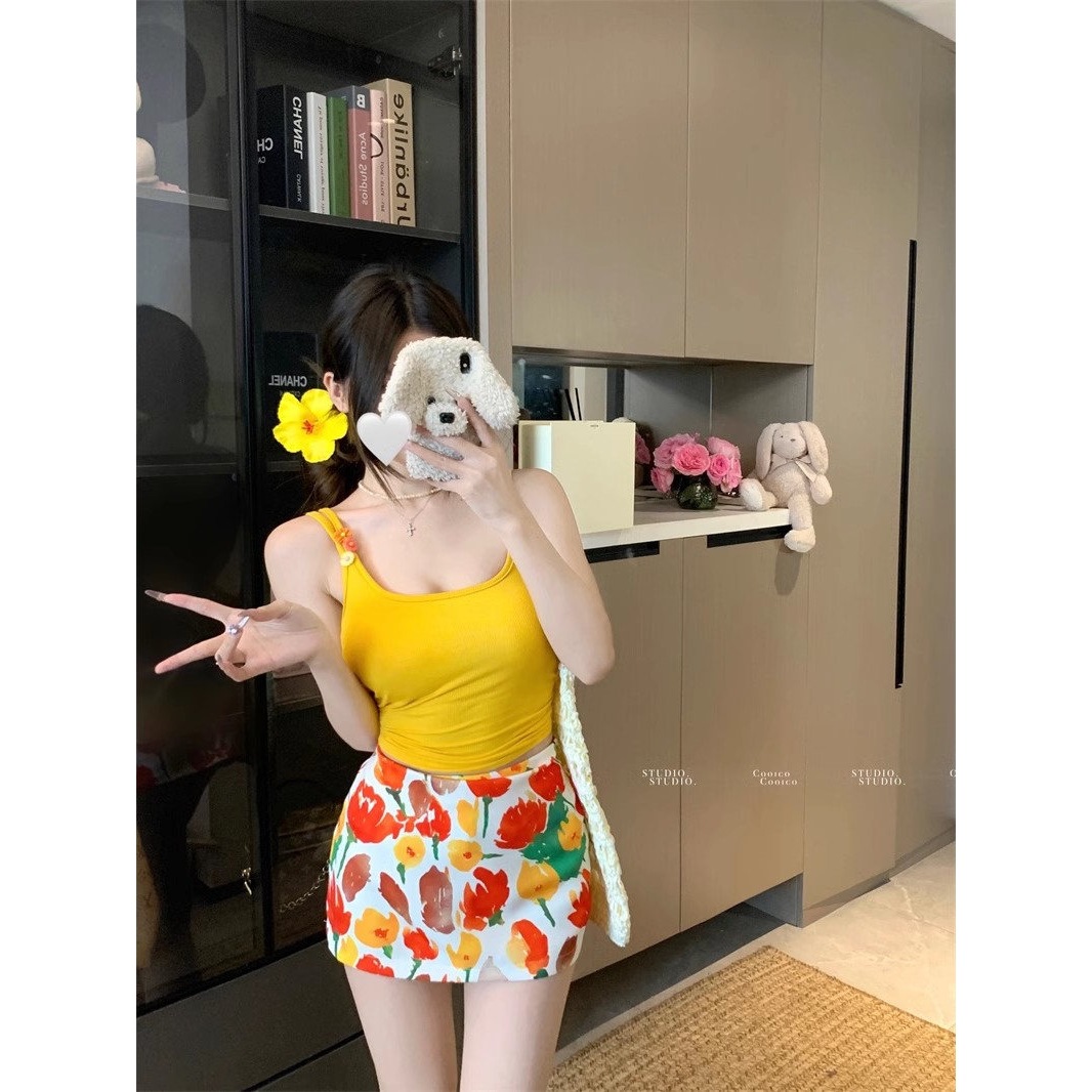 해변 의류 세트, 시크한 캐미솔 여성 여름 하이웨이스트 프린트 스커트, 힙 커버 스커트 투피스 세트