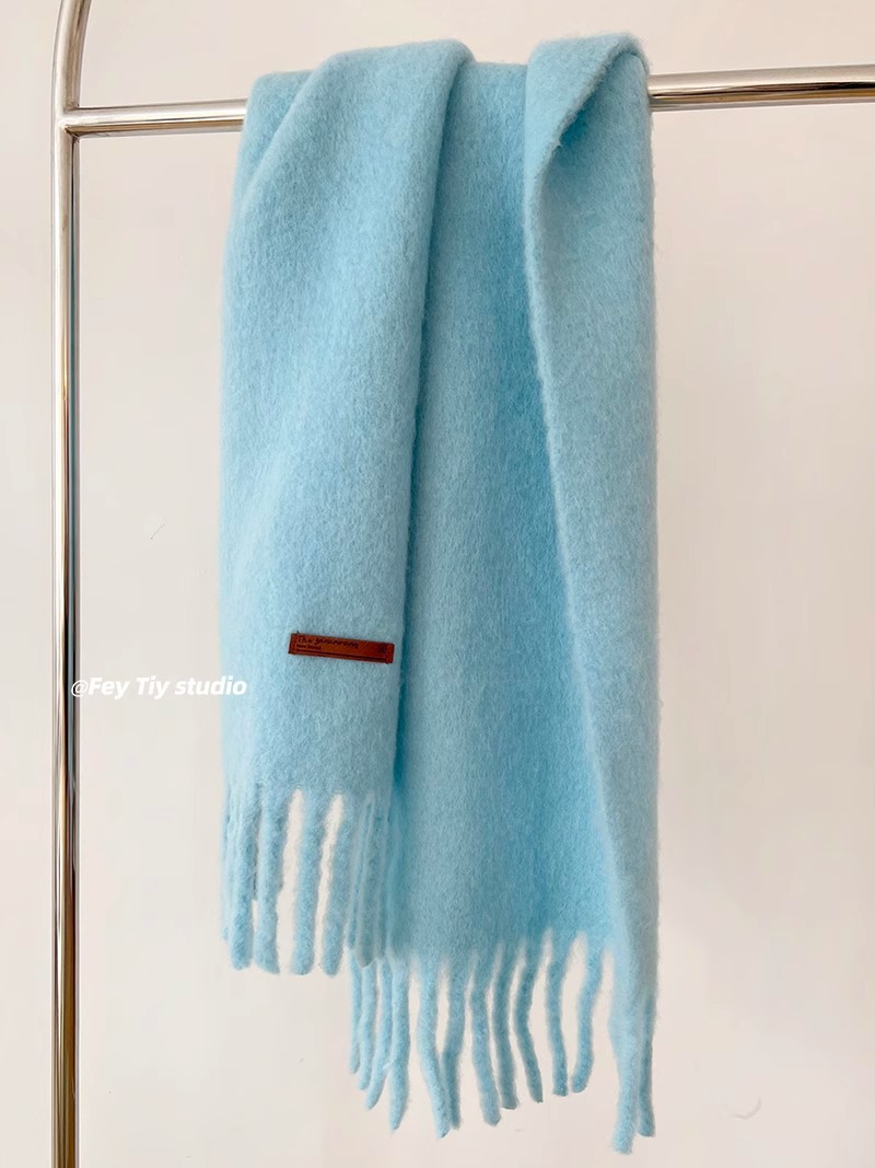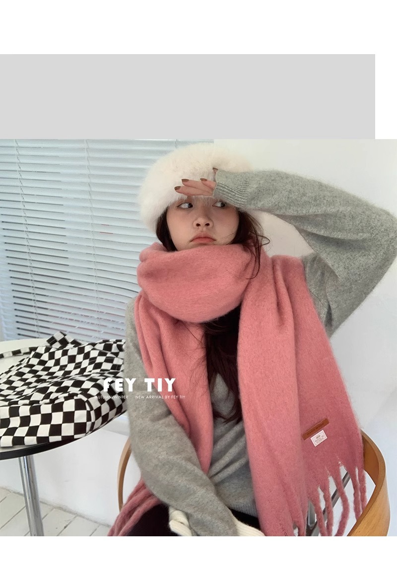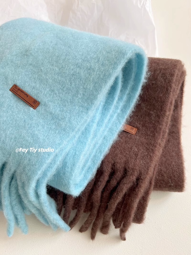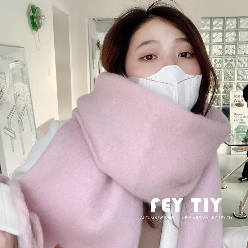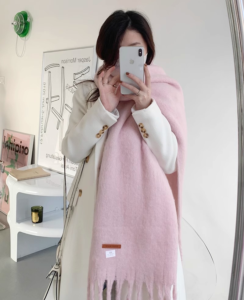 대외 무역 모헤어 솔리드 컬러 스카프 겨울 마카롱 컬러 따뜻한 얼굴 커버 방풍 및 내한성 술 숄 스카프스토어 가기