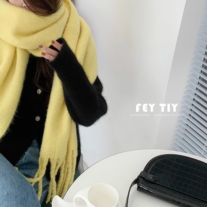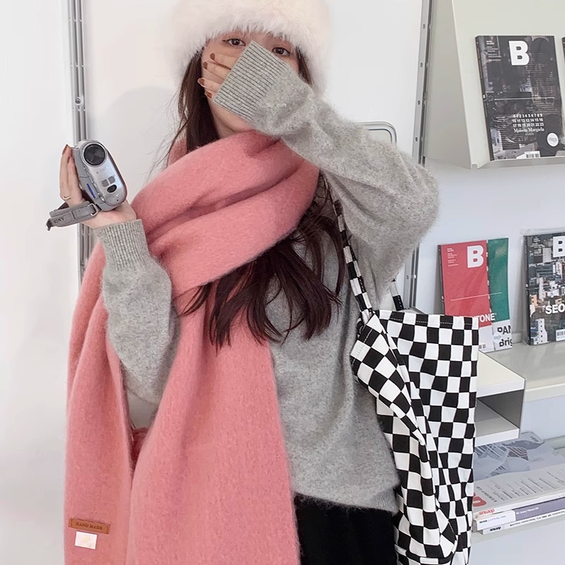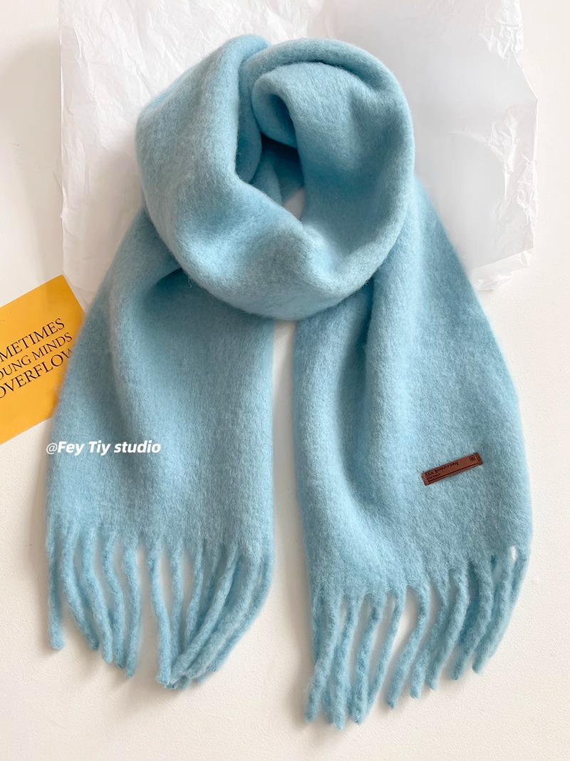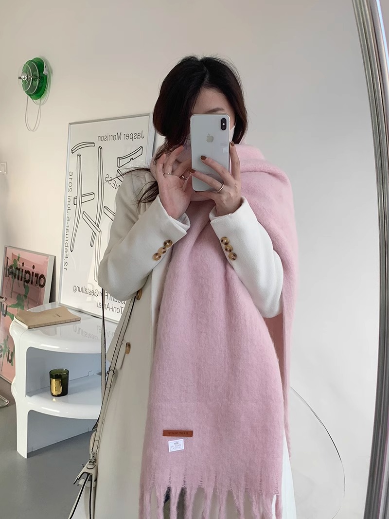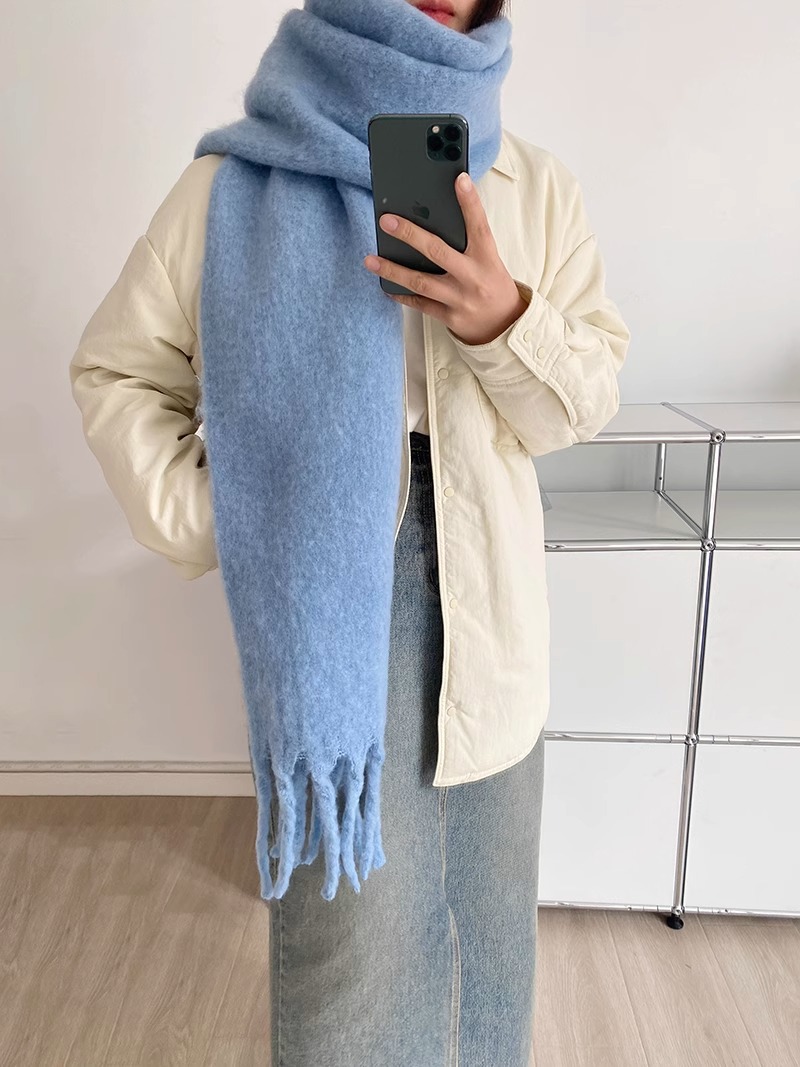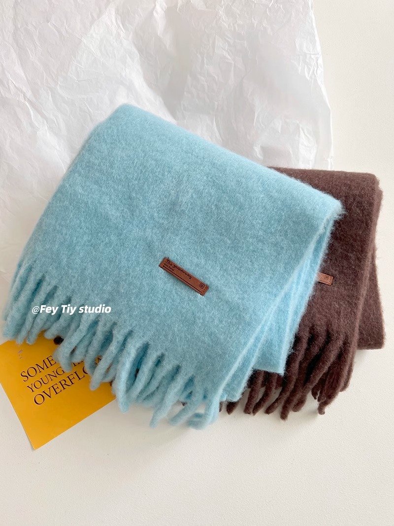 대외 무역 모헤어 솔리드 컬러 스카프 겨울 마카롱 컬러 따뜻한 얼굴 커버 방풍 및 내한성 술 숄 스카프스토어 가기