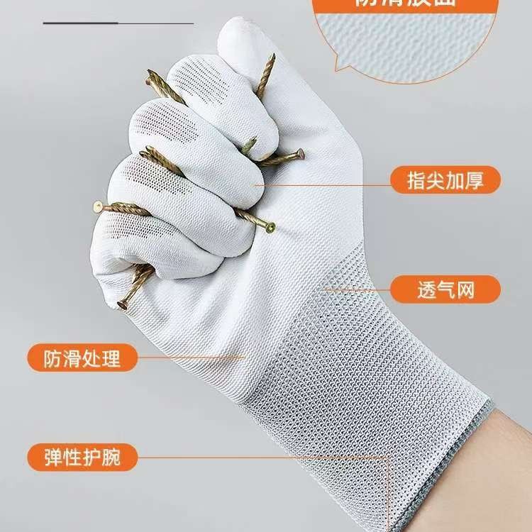 장갑, 노동 보호 작업, 내마모성, 손가락 코팅, 손바닥 코팅, 고무 담근 나일론, 통기성, 두꺼운, 미끄럼 방지 고무, 얇은 작업용스토어 가기