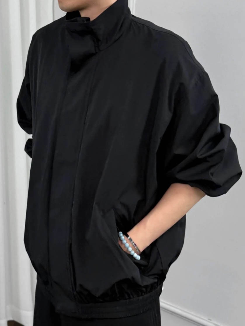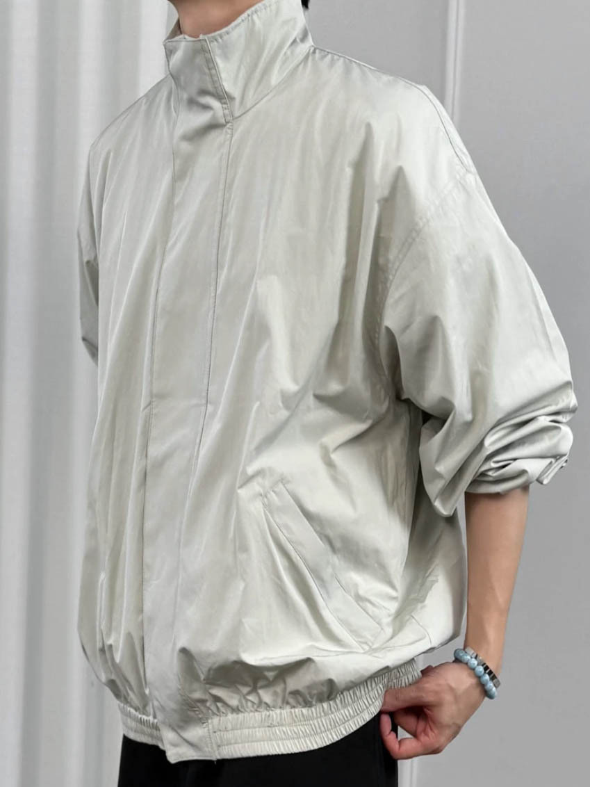 파리와 같은 스타일의 소프트 쉘 자외선 차단 재킷, 짧은 재킷, 야외 기능성 스타일 루즈 지퍼 스탠드 칼라 재킷 남성용스토어 가기
