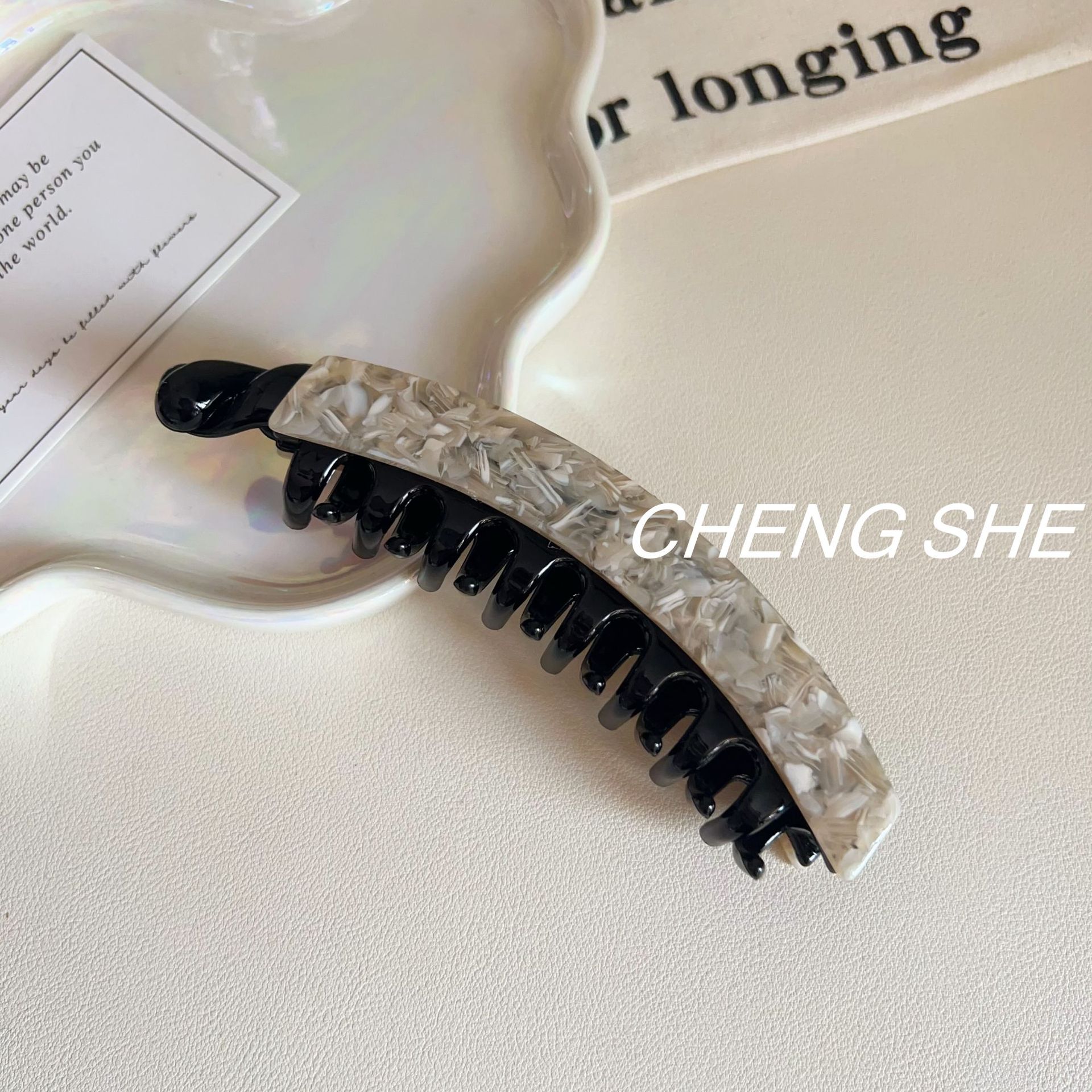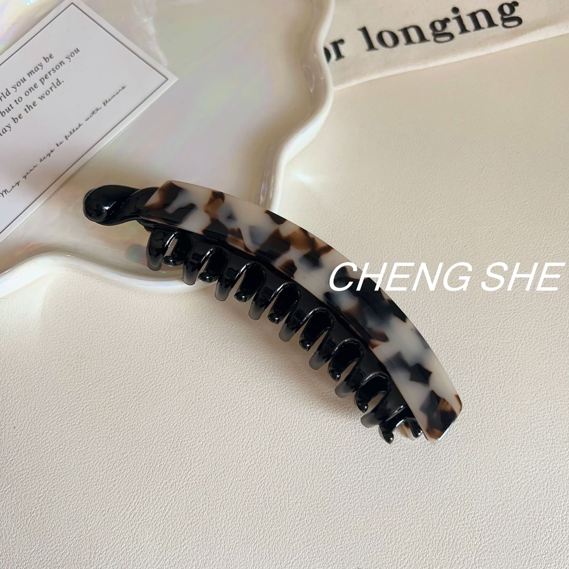 • 아세테이트 라지 프렌치 바나나 클립 [라이스 패턴]