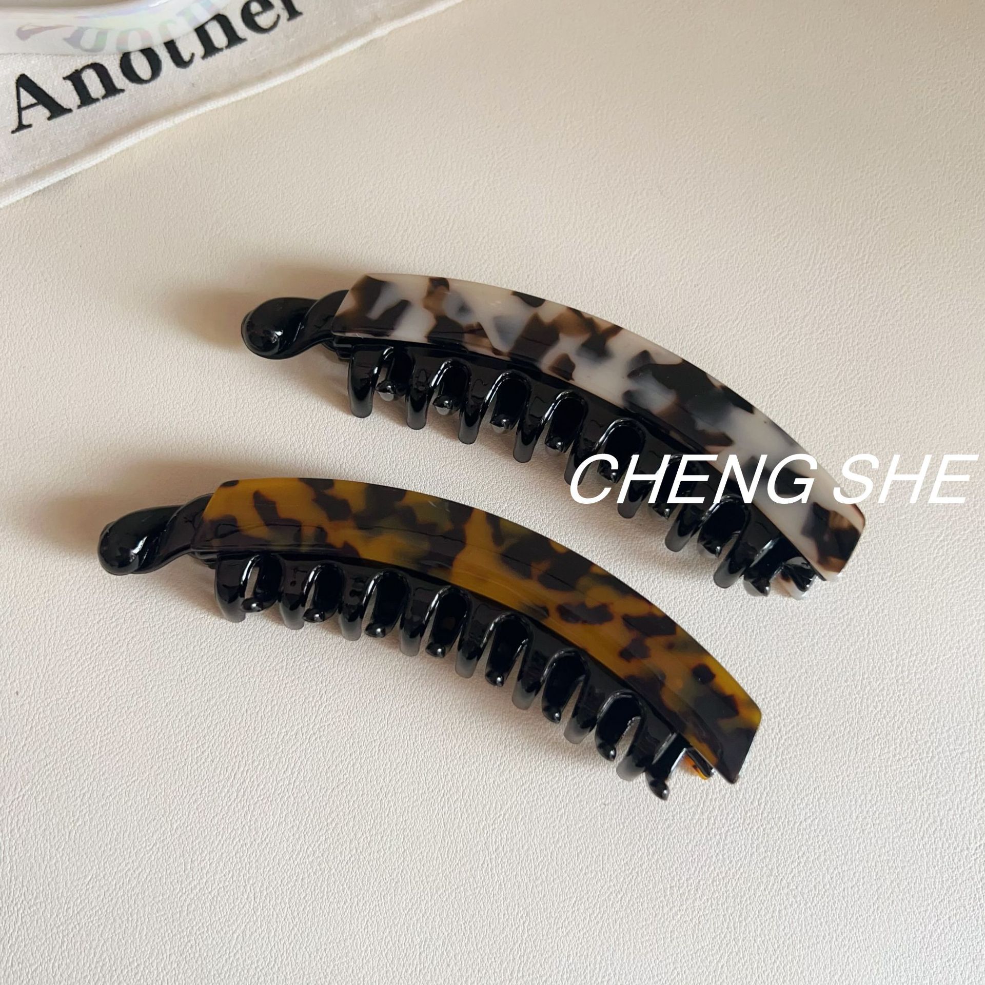 • 스몰 프렌치 아세테이트 바나나 클립 [라이트 레오파드]