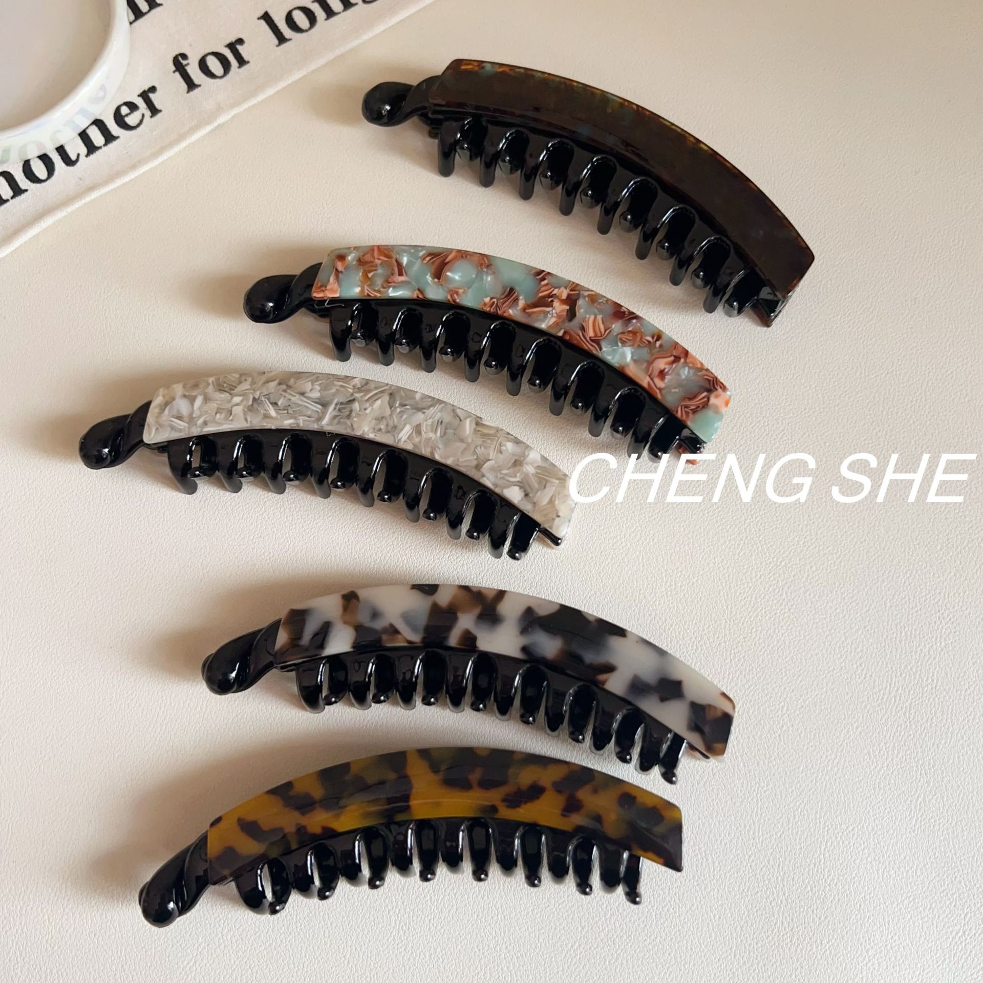 • 스몰 프렌치 아세테이트 바나나 클립 [그린 브라운]