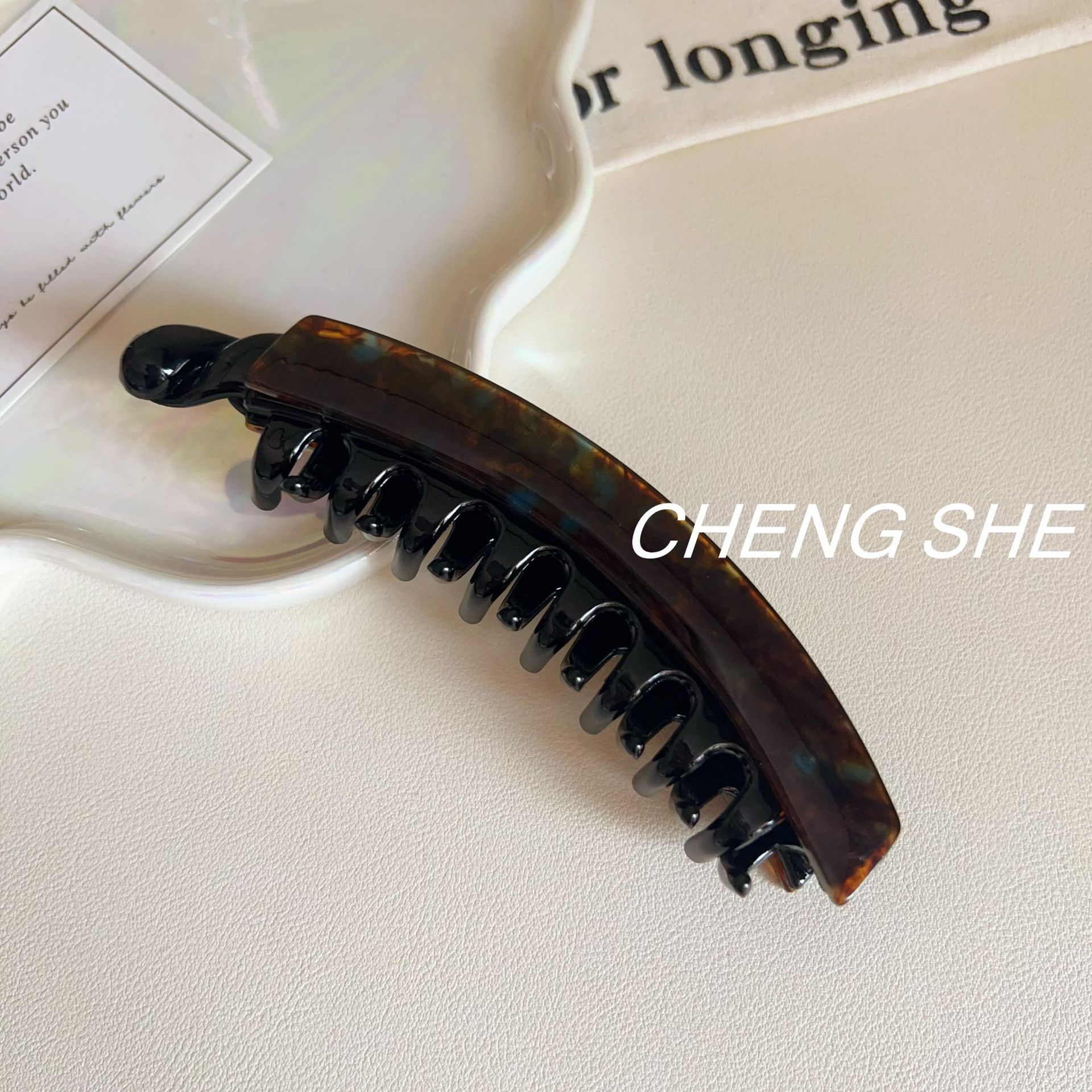 • 아세테이트 라지 프렌치 바나나 클립 [그린 브라운]
