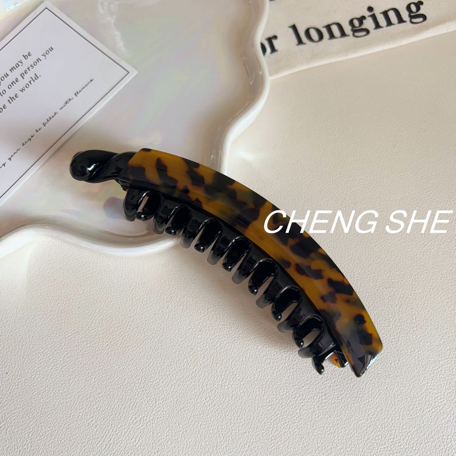 • 스몰 프렌치 아세테이트 바나나 클립 [다크 레오파드]