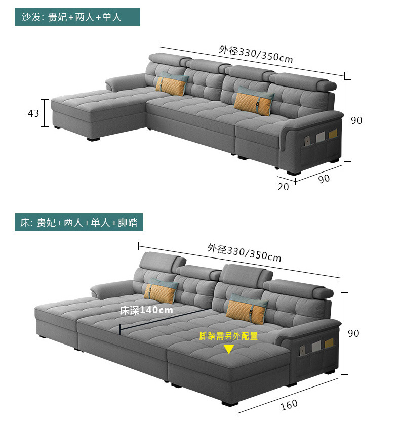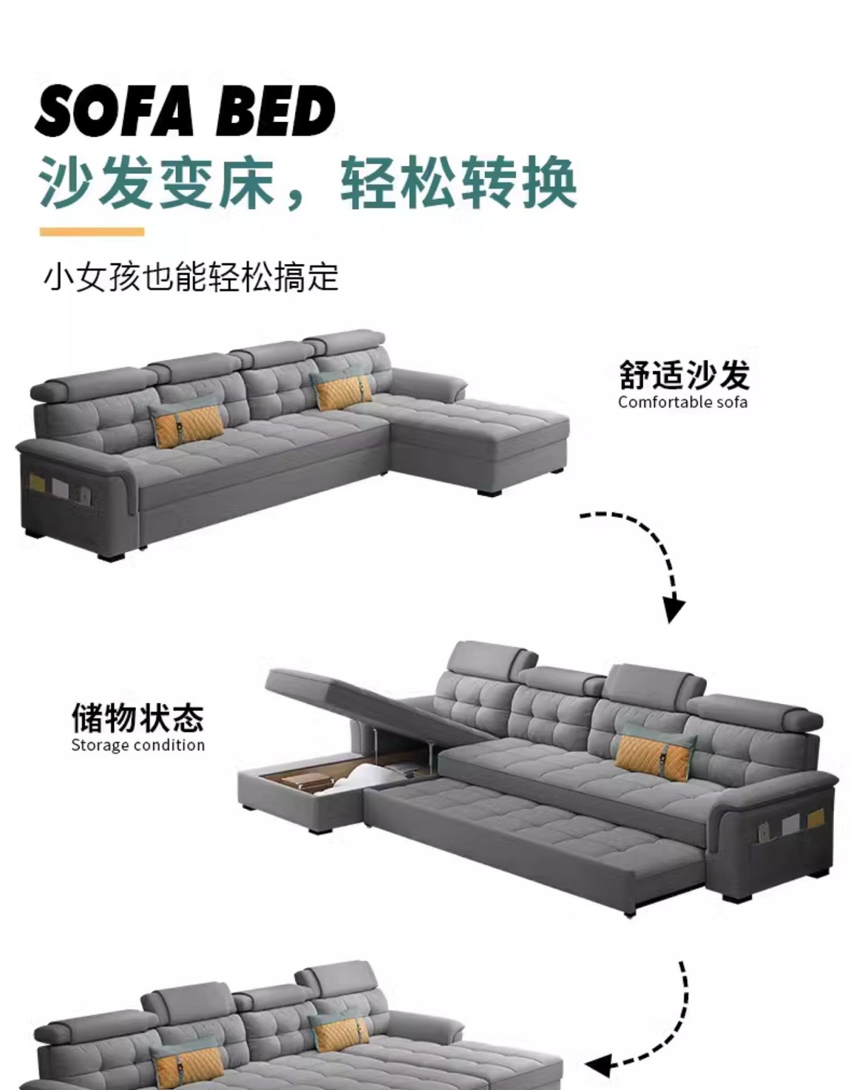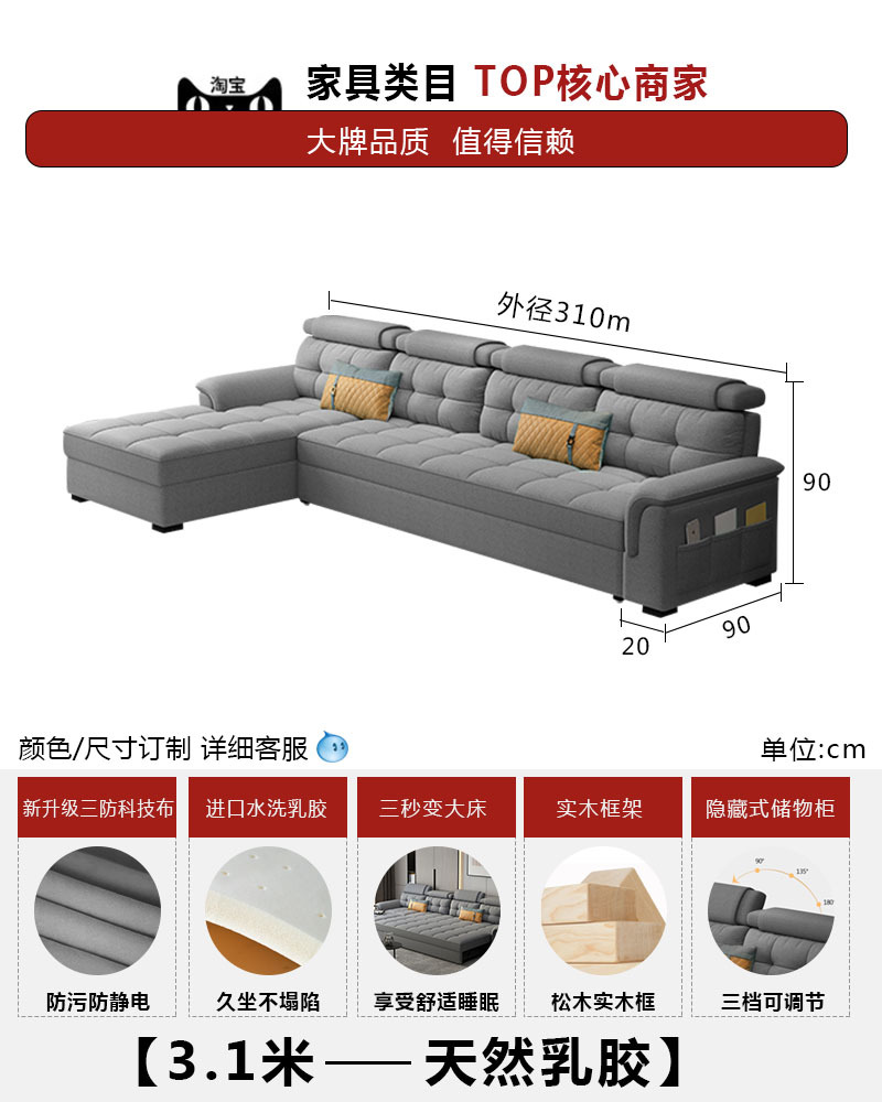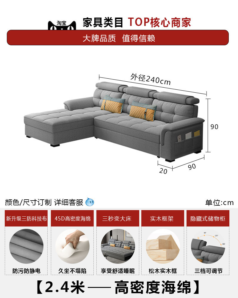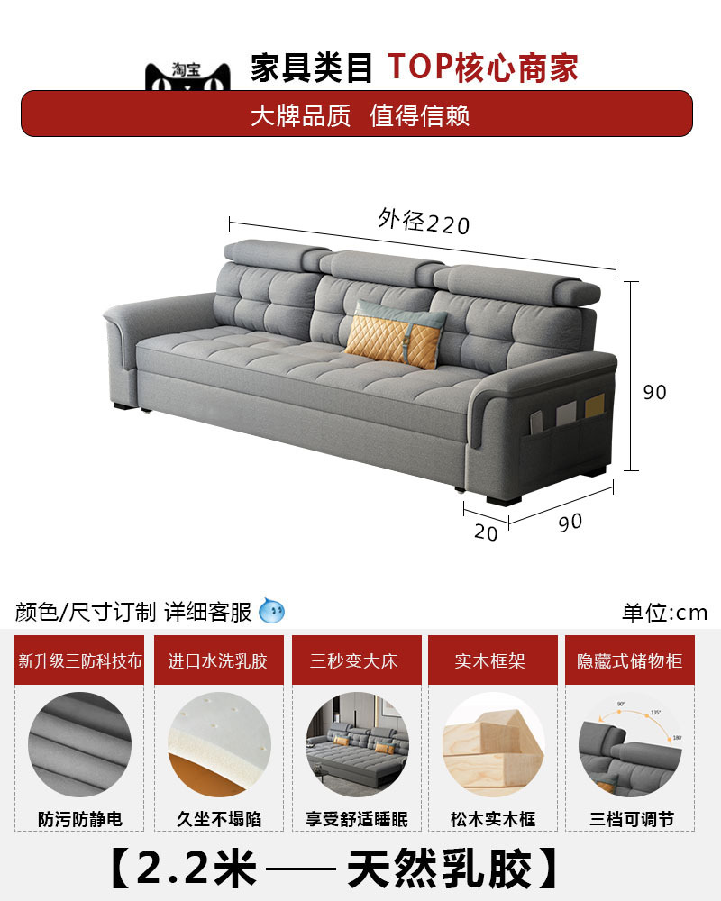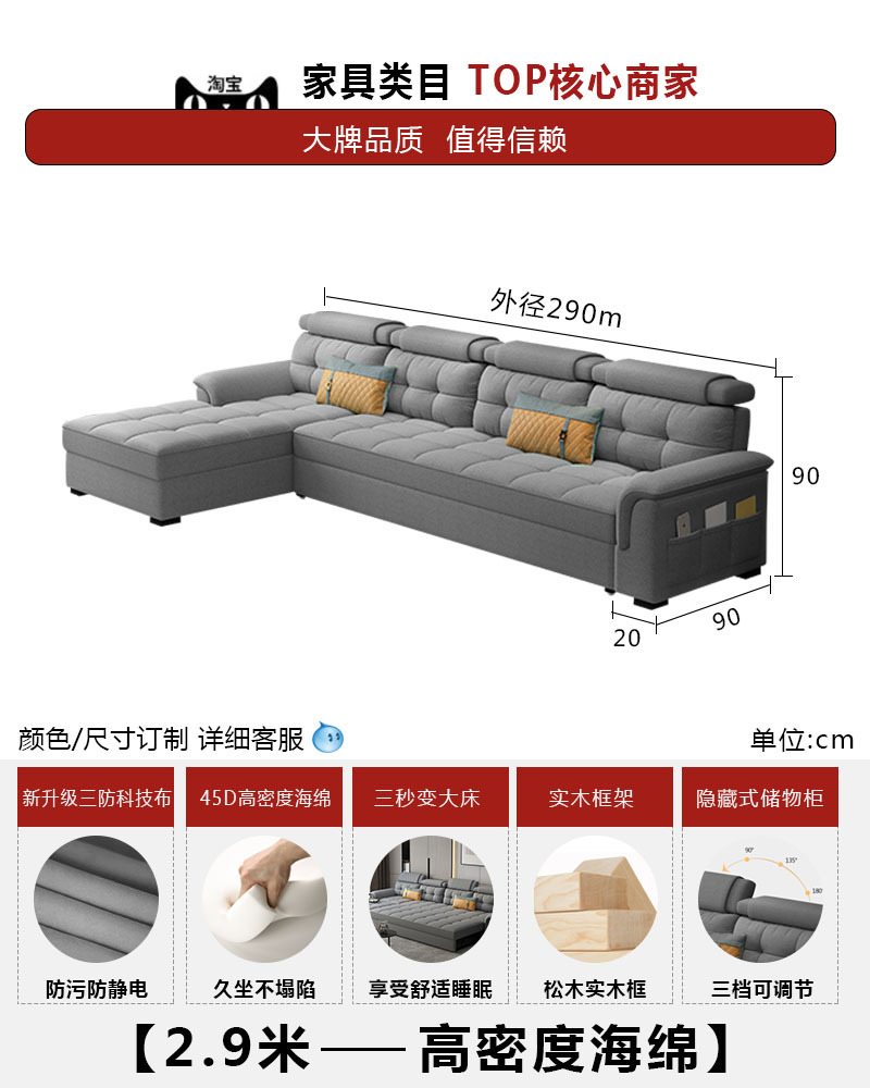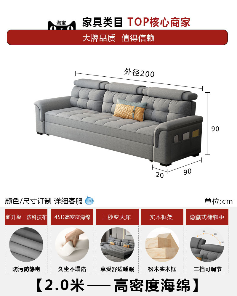 소파 베드 이중 목적 접이식 수납 다기능 거실 좌석 및 침대 소형 아파트 개폐식 긴 의자 코너 기술 천스토어 가기