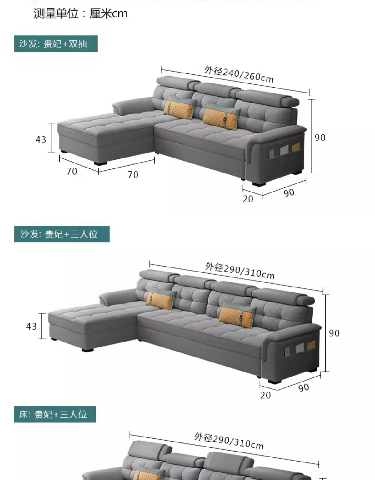 • 3.1m [업그레이드된 수면 라텍스 레이어] 황실 첩 좌석 + 3인 좌석